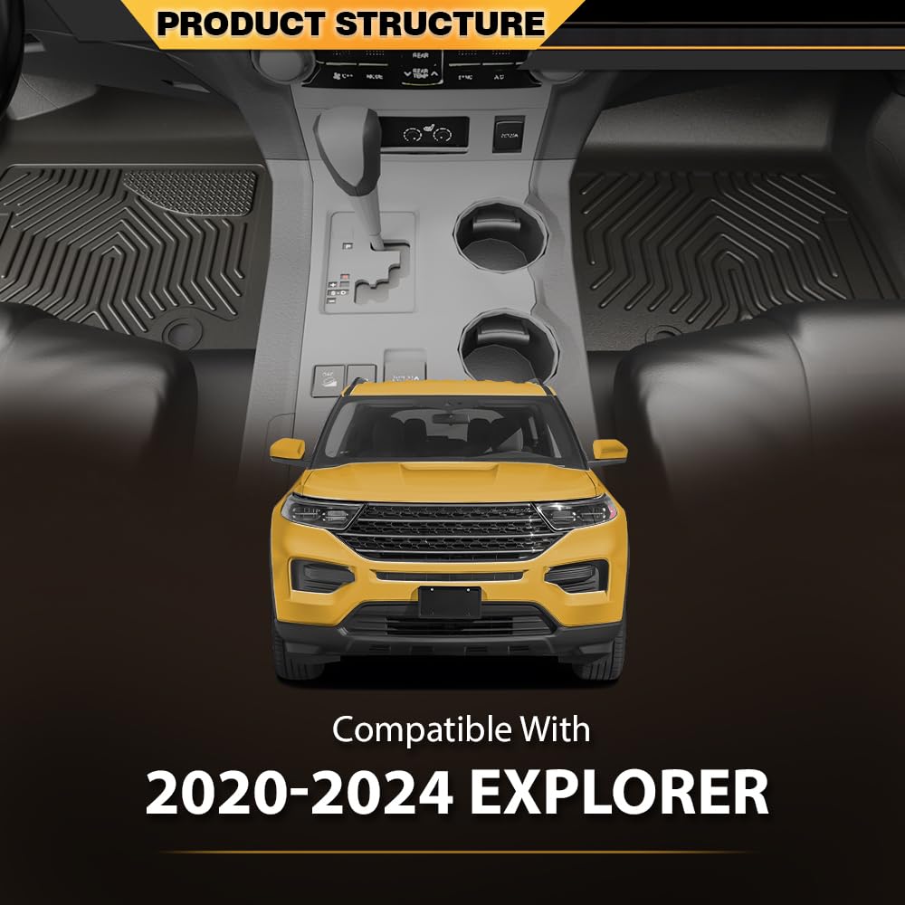 G-PLUS TPE Floor Mats Cargo Liners, Compatible with Ford Explorer 2020 2021 2022 2023 2024 2025, 1st & 2nd Row 3PCS, Black Floor