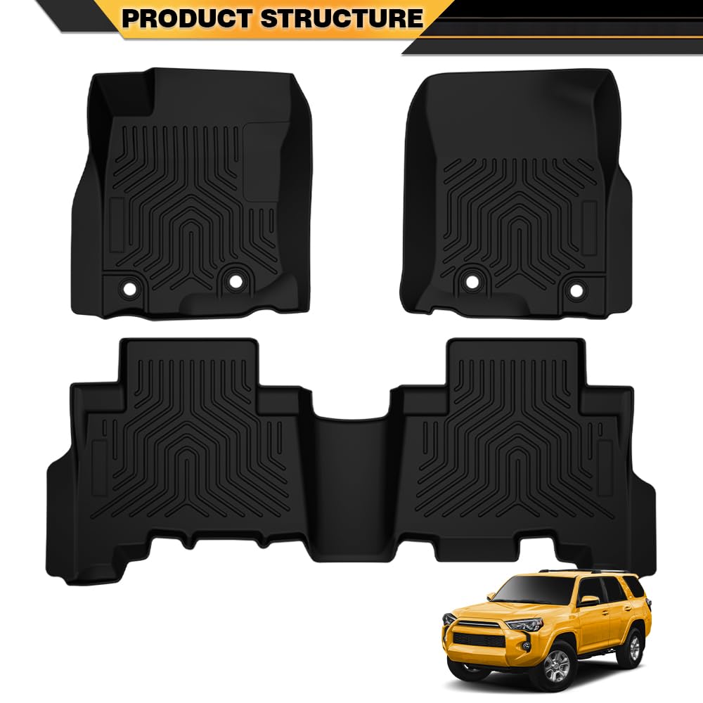 G-PLUS TPE Floor Mats Compatible with Toyota 4Runner 2013-2023/Fit Lexus GX460 2014-2023, 1st & 2nd Row 3pcs Mats All Weather Fl