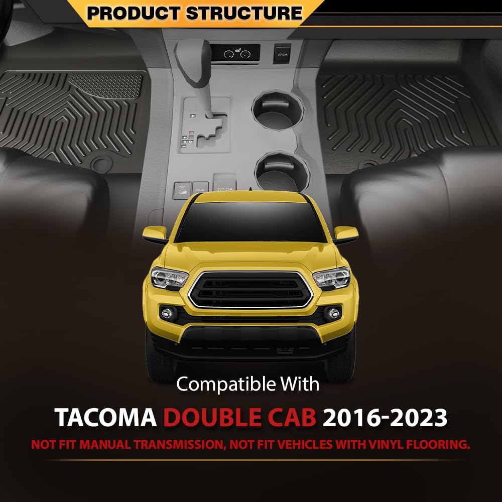 G-PLUS TPE Floor Mats Floor Liner Fit for Toyota Tacoma Double Cab 2016-2023/Not Fit Vehicles w/Vinyl Flooring,Not Fit Manual Tr