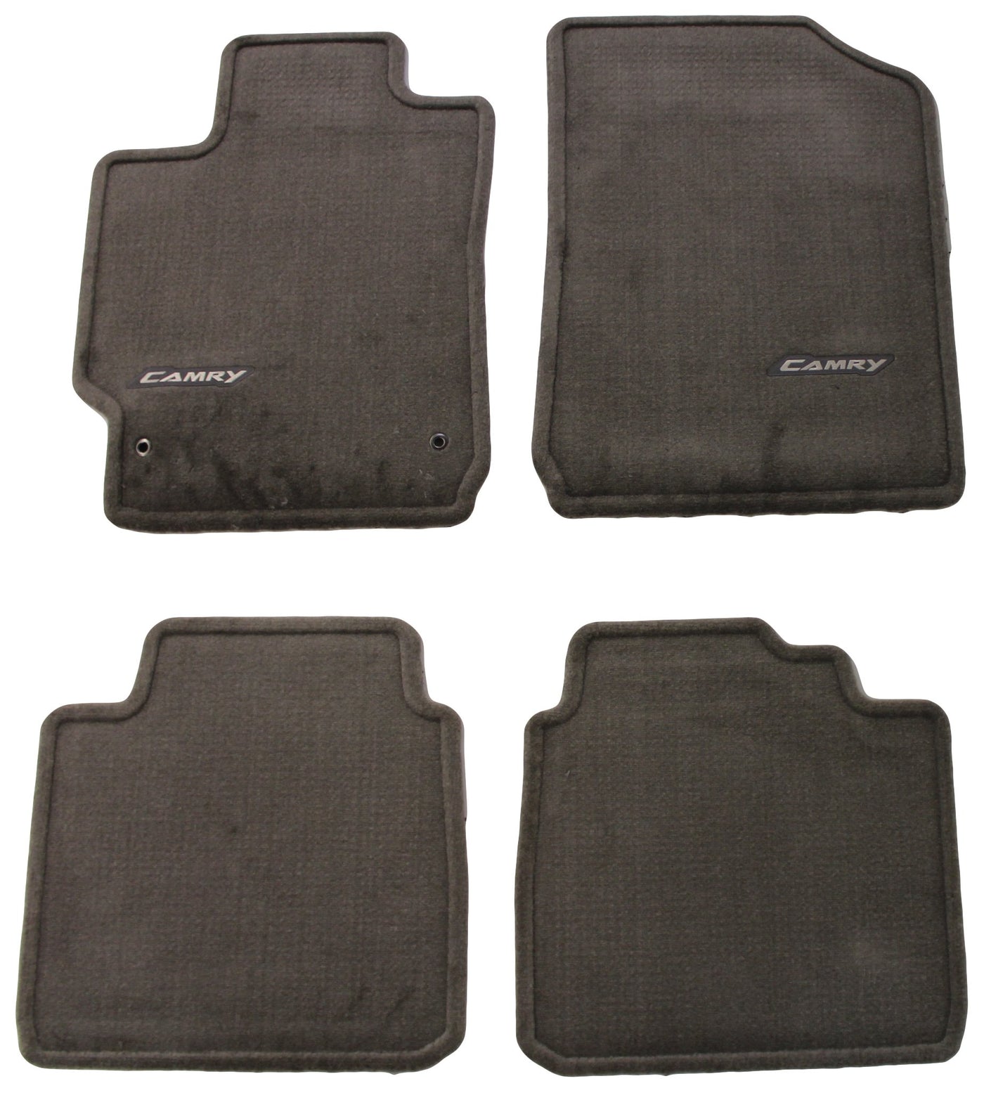 Carpet floor mats are custom fitted to the Camry's floor pattern. Enhances interior appearance and provide optimal protection to original carpet. Non-slip, ''nib'' backing and positive retention clips help prevent mats from sliding. Embroidered with Camry logo to help ensure owners have the right mat for their vehicle. Color coordinated to vehicle interior. Constructed of high grade plush nylon carpeting.