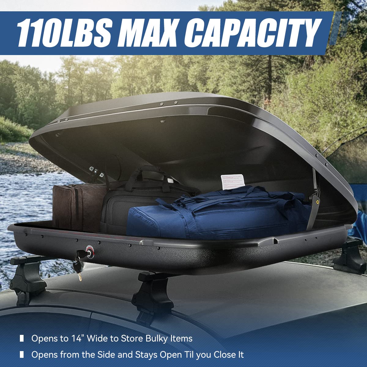 Hard Shell Roof Top Mount Car Storage Travel Luggage Box Cargo Carrier, 53 (L) X 34 (W) X 15 (H) Inches, Capacity 110 Pounds, 11