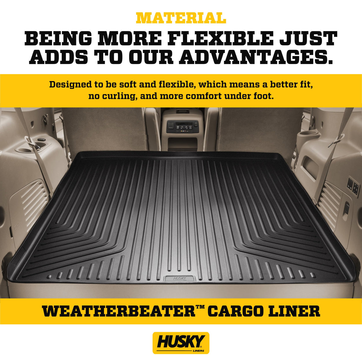 PROTECT YOUR CARGO WITH LEGENDARY PROTECTION | The Weatherbeater combines a laser-tight fit with the legendary proven durability that built the Husky reputation. The original all-weather cargo liner will tackle any big spill that comes your way. The Weatherbeaters construction is a no-slip zone. It stands up to busted milk cartons, mystery messes, and more, even under extreme temperatures. Its laser-scanned, FormFit Design gives your SUV, Van, or Car an ultra-clean look with easy cleanup to match, while its patented, FormFit Edge keeps spills contained, carpets unstained. Its unbeatable Husky protection guaranteed for life. Proudly made in the USA.