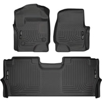 Husky Liners Weatherbeater Floor Mats | Fits 2017 - 2024 Ford F-250/F-350/F-450 Supercrew Cab With Factory Carpet & With Fold Flat Storage | Front & 2Nd Row, 3-Pc Black - 94061