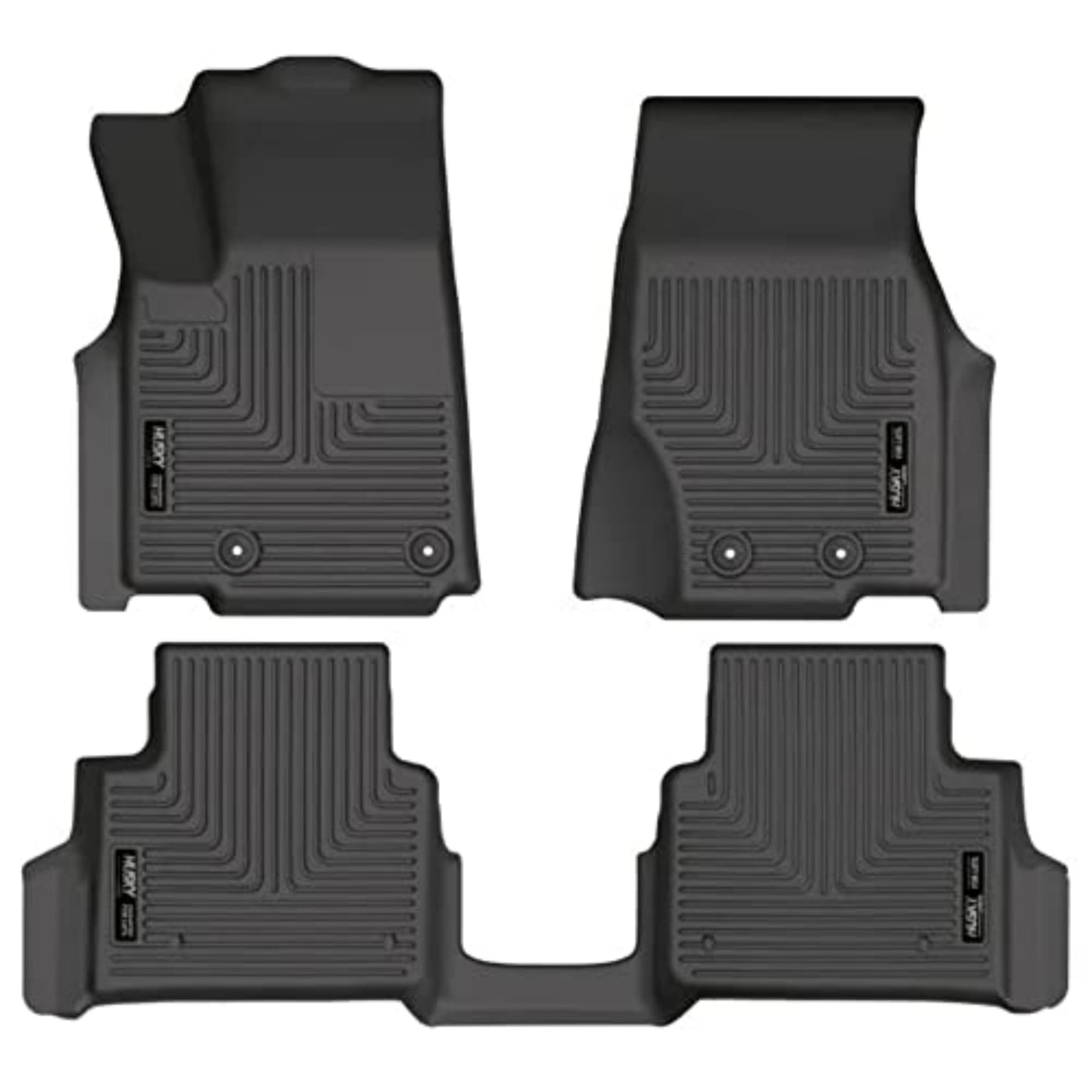 Husky Liners Weatherbeater Floor Mats | Fits 2021-2024 Jeep Grand Cherokee L W/2Nd Row Bucket Seats & Mounted Cup Holder On Center Hump | Front & 2Nd Row, 3-Pc Black - 99181