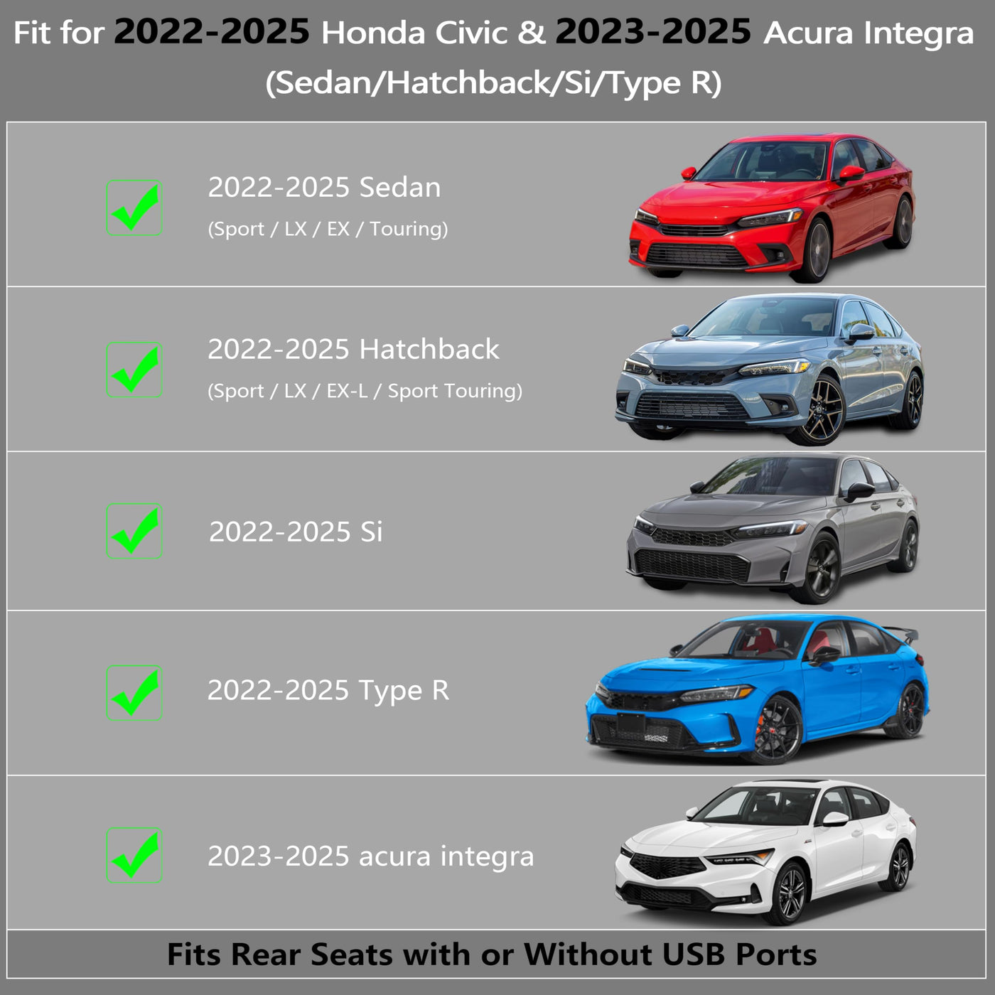 Karpal Floor Mats For Honda Civic 2022-2025 Sedan Hatchback Si (Include Sport), 2Nd Row With & W/O Usb Port, For Acura Integra 2