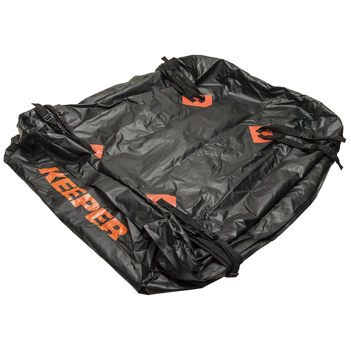 The Keeper Roof Top Cargo Bag features 15 cubic ft. to protect and secure cargo loads from road grit, sun, wind and rain. The cargo bag measures approximately 44 in. x 34 in. x 17 in. with rubber laminated nylon. It fits most roof racks with attachment capabilities on all four sides. Must use extreme caution when not utilizing all four side attachments.