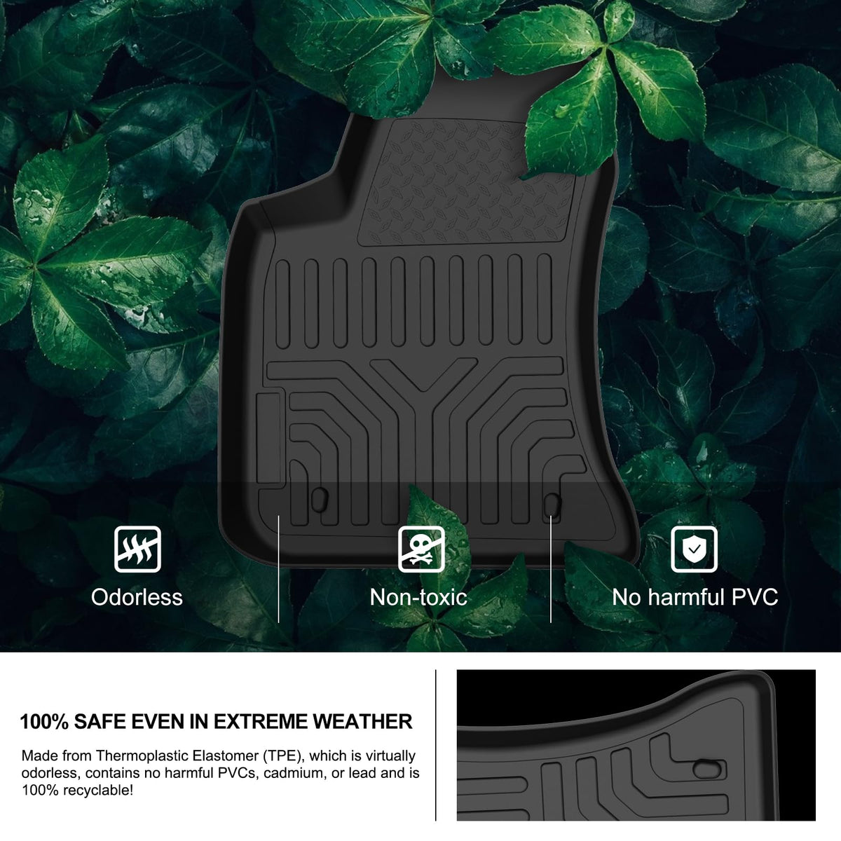 Q: What material are the KIWI MASTER floor mats made of?A: The floor mats are made from durable Thermoplastic Elastomer (TPE), which is non-smell, contains no harmful PVC, and provides excellent protection against stains and moisture.