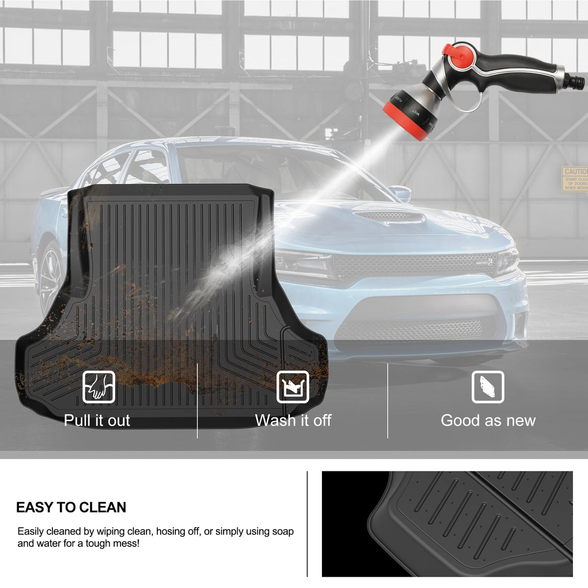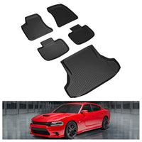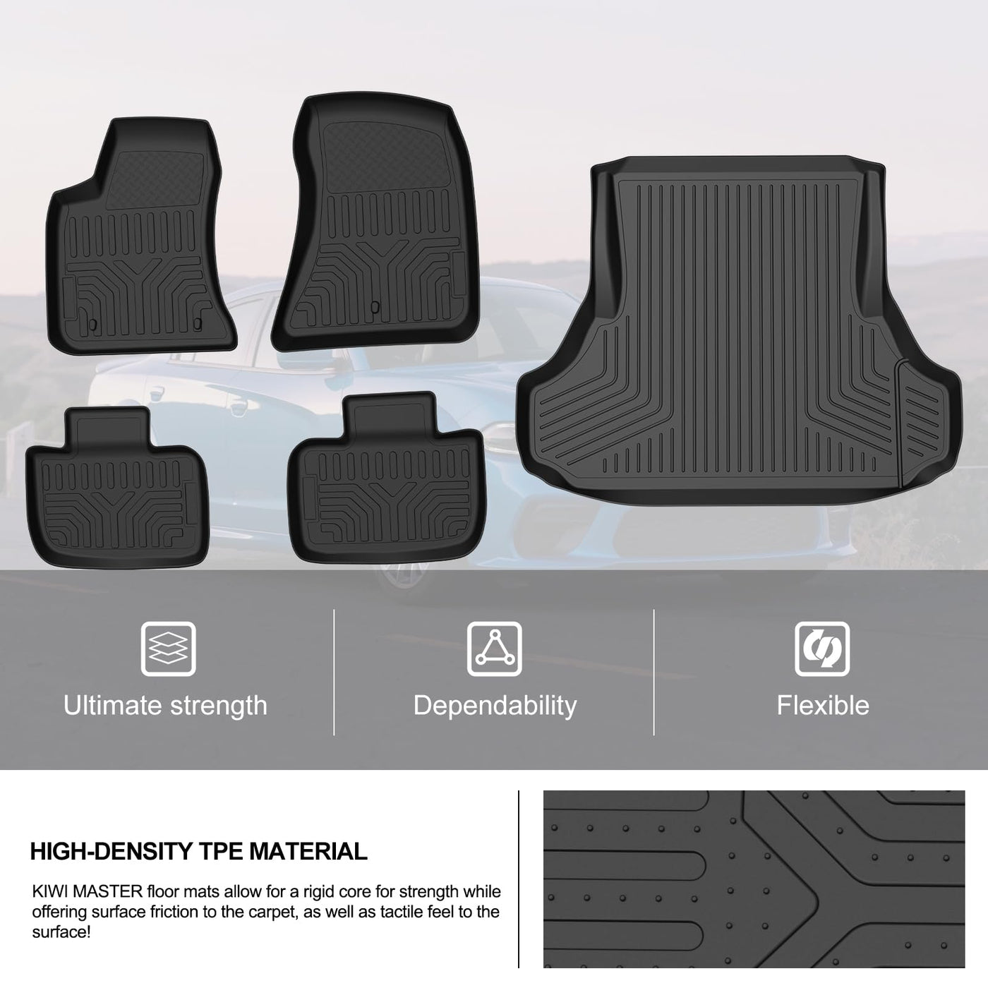 KIWI MASTER Floor Mats & Cargo Liner for 2011-2023 Dodge Charger RWD/Chrysler 300 RWD All Weather Mat Custom Fit Front & Rear 2 Row Seat Trunk Tray TPE Slush Liners Set Black