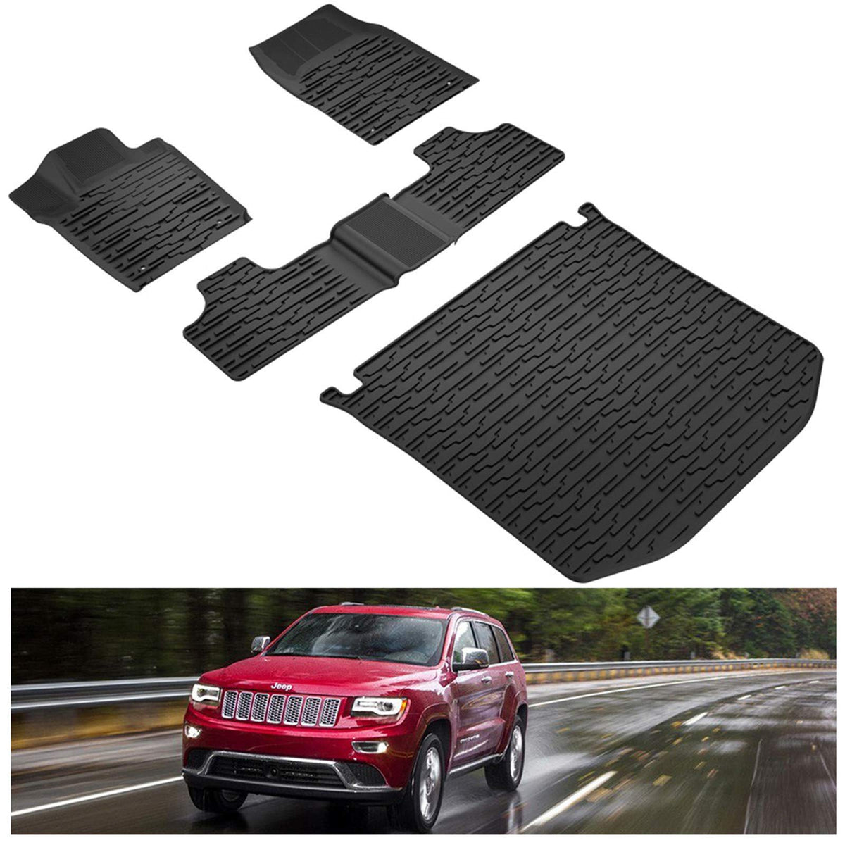 KIWI MASTER Floor Mats & Cargo Liner for 2013-2015 Jeep Grand Cherokee OEM Replacement 82214879 82212085 All Weather Mat Front Rear 2 Row Seat Trunk Tray TPE Slush Liners Black