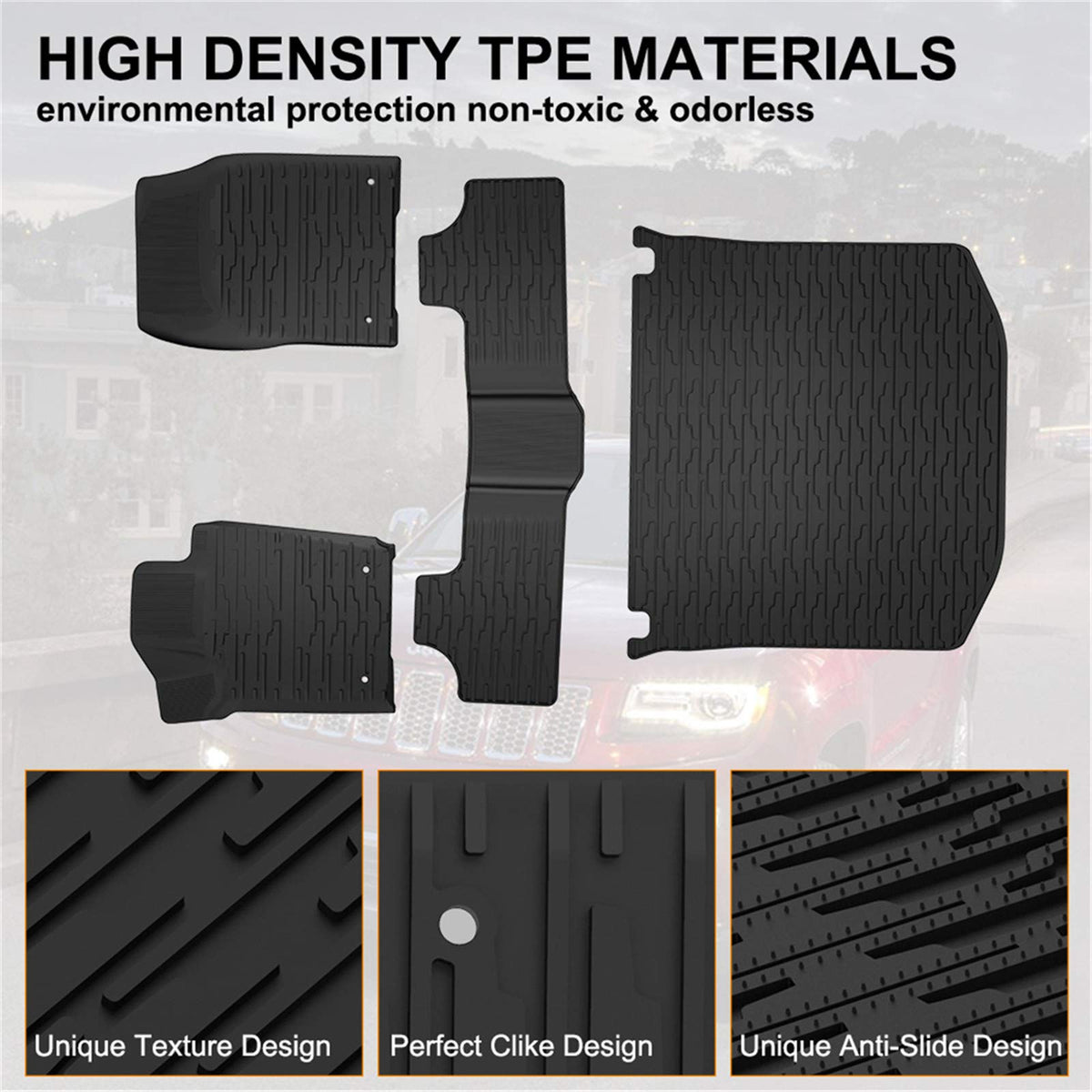 Q: What material are the floor mats made from?A: The floor mats are made from high-density TPE (Thermoplastic Elastomer) material, which is durable, non-toxic, and recyclable, ensuring safety and longevity even in extreme weather conditions.