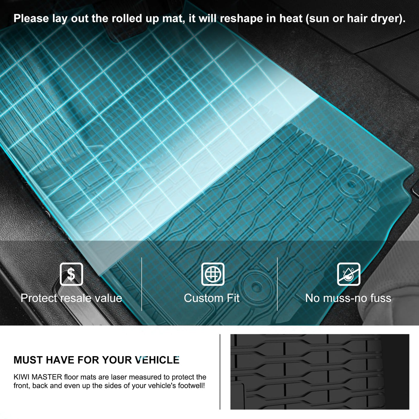 KIWI MASTER Grand Cherokee L floor mats protect the vehicle's driver and passenger floors. Made of TPE material, these mats will hold up to the harsh elements, preventing stains and moisture to the original factory carpets. Easily clean mats with soap and hot or cold water and a mild brush, no harsh scrubbing or special cleaners needed special anti-skid nib backing will prevent any slipping or movement on contact. Keep your focus on your driving, and not on adjusting your car mats keep your car floor in pristine condition, easily, from the trusted brand in automotive car accessories. Specification: Color:Black Material:TPE Shipping Weight: 17.1 LBS Packing Dimension: 31.4 x 22.0 x 5.5 inches Fitment: Compatible for Grand Cherokee L Package Included: Floor Mats & Cargo Liner for Grand Cherokee L