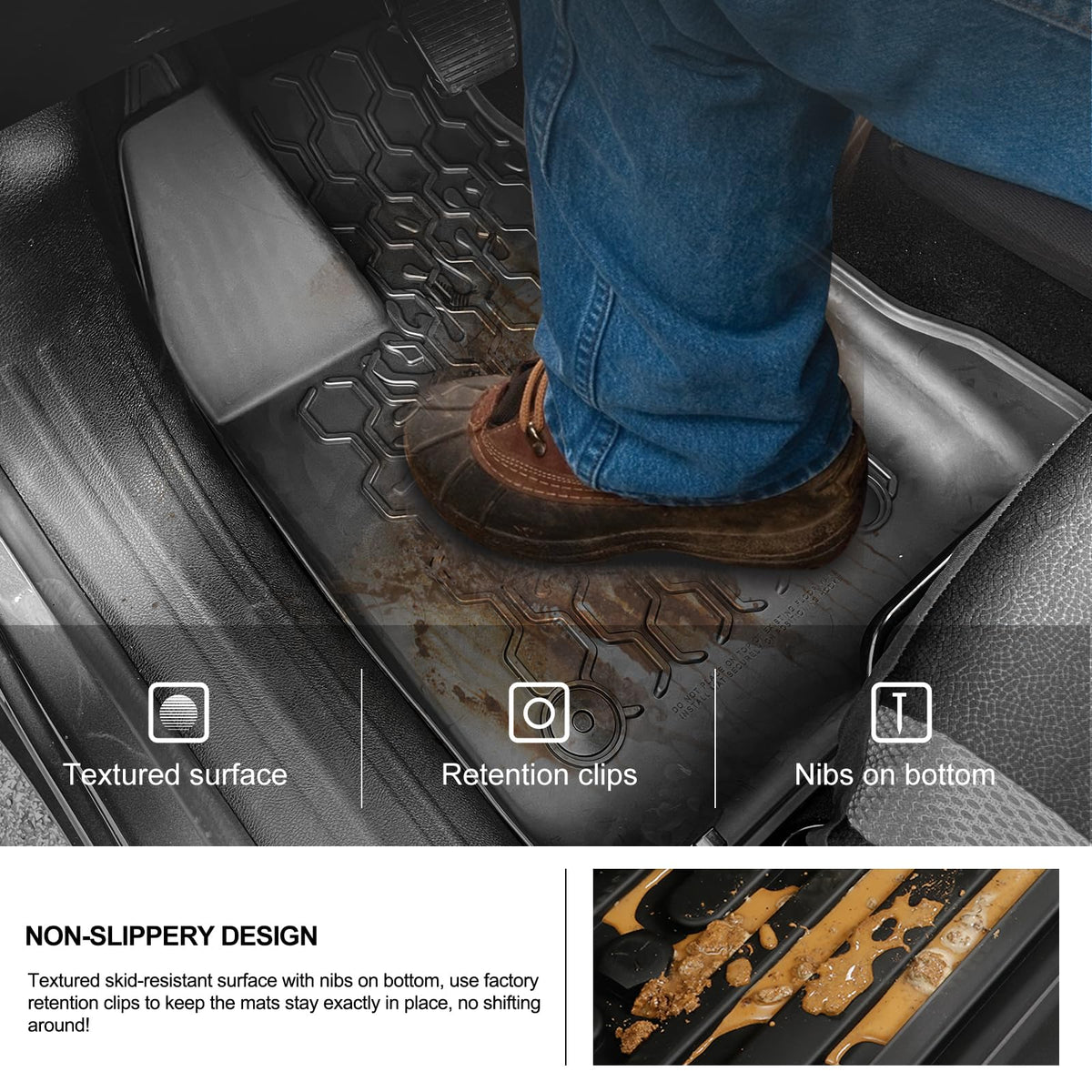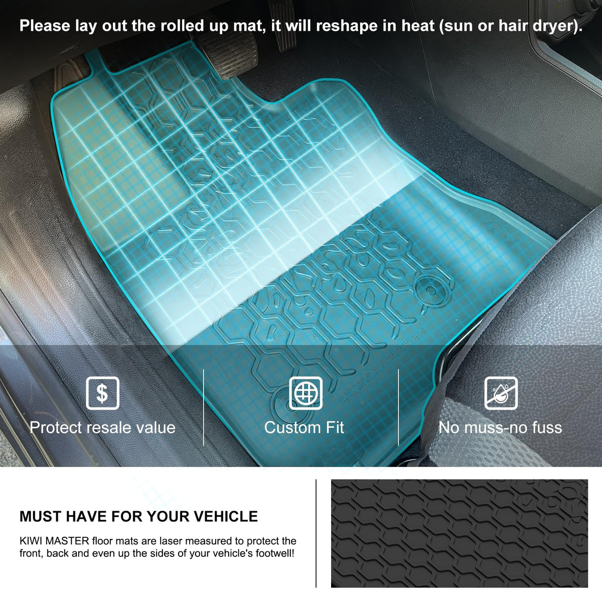 KIWI MASTER floor mats protect the vehicle's driver and passenger floors. Made of TPE material, these mats will hold up to the harsh elements, preventing stains and moisture to the original factory carpets. Easily clean mats with soap and hot or cold water and a mild brush, no harsh scrubbing or special cleaners needed special anti-skid nib backing will prevent any slipping or movement on contact. Keep your focus on your driving, and not on adjusting your car mats keep your car floor in pristine condition, easily, from the trusted brand in automotive car accessories. Specification: Color:Black Material:TPE Shipping Weight: 14.96 LBS Packing Dimension: 28.7 X 21.3 X 5.9 inches Fitment: 2015 2016 2017 2018 2019 Jeep Renegade Package Included: 1Set of Floor Mats & Cargo Liners