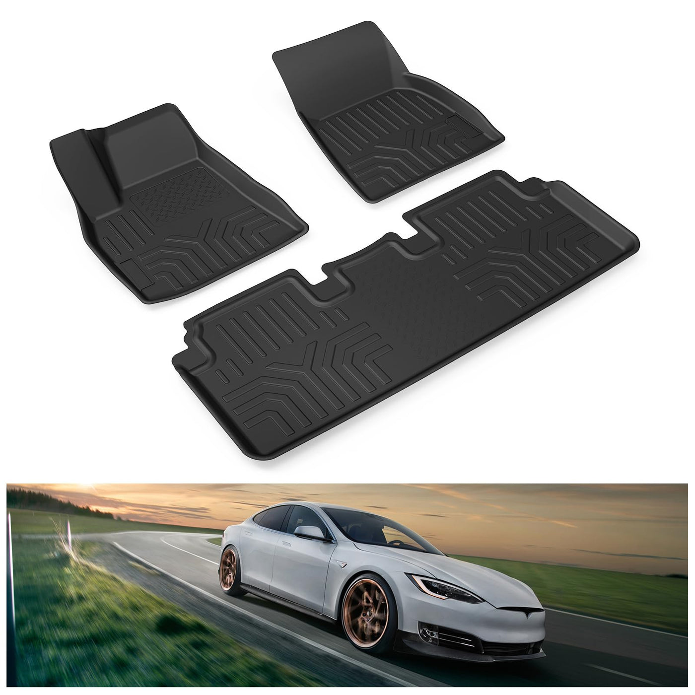 KIWI MASTER Model S floor mats protect the vehicle's driver and passenger floors. Made of TPE material, these mats will hold up to the harsh elements, preventing stains and moisture to the original factory carpets. Easily clean mats with soap and hot or cold water and a mild brush, no harsh scrubbing or special cleaners needed special anti-skid nib backing will prevent any slipping or movement on contact. Keep your focus on your driving, and not on adjusting your car mats keep your car floor in pristine condition, easily, from the trusted brand in automotive car accessories. Specification: Color:Black Material:TPE Shipping Weight: 12.5 LBS Packing Dimension: 31.4 x 22.0 x 3.5 inches Fitment: 2015-2019 Tesla Model S Package Included: 1 Set Floor Mats for 2015-2019 Tesla Model S