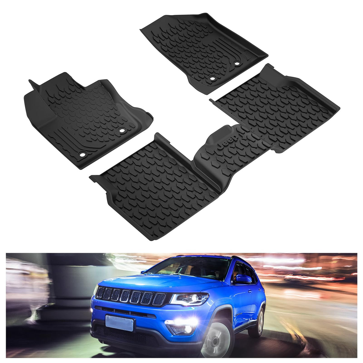 KIWI MASTER Compass floor mats protect the vehicle's driver and passenger floors. Made of TPE material, these mats will hold up to the harsh elements, preventing stains and moisture to the original factory carpets. Easily clean mats with soap and hot or cold water and a mild brush, no harsh scrubbing or special cleaners needed special anti-skid nib backing will prevent any slipping or movement on contact. Keep your focus on your driving, and not on adjusting your car mats keep your car floor in pristine condition, easily, from the trusted brand in automotive car accessories. Specification: Color:Black Material:TPE Shipping Weight: 13.2 LBS Packing Dimension: 28.7 x 23.6 x 6.7 inches Fitment: 2017-2025 Compass Package Included: 1 Set Floor Mats for Compass