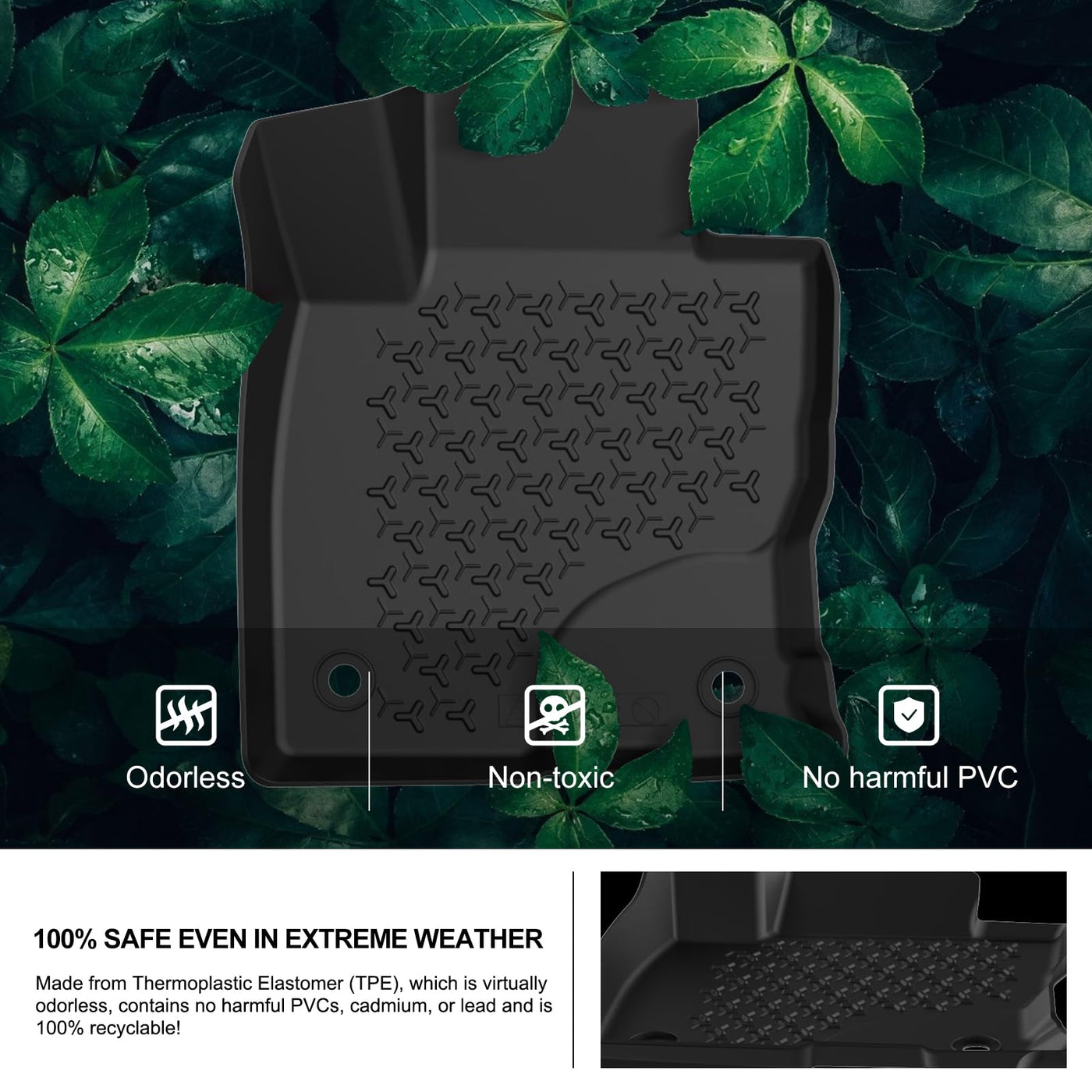 KIWI MASTER Bronco Sport floor mats protect the vehicle's driver and passenger floors. Made of TPE material, these mats will hold up to the harsh elements, preventing stains and moisture to the original factory carpets. Easily clean mats with soap and hot or cold water and a mild brush, no harsh scrubbing or special cleaners needed special anti-skid nib backing will prevent any slipping or movement on contact. Keep your focus on your driving, and not on adjusting your car mats keep your car floor in pristine condition, easily, from the trusted brand in automotive car accessories. Specification: Color:Black Material:TPE Shipping Weight: 8.8 LBS Packing Dimension: 25.9 x 20.2 x 3.5 inches Fitment: Compatible for 2021-2024 Bronco Sport Package Included: Floor Mats for 2021-2024 Bronco Sport