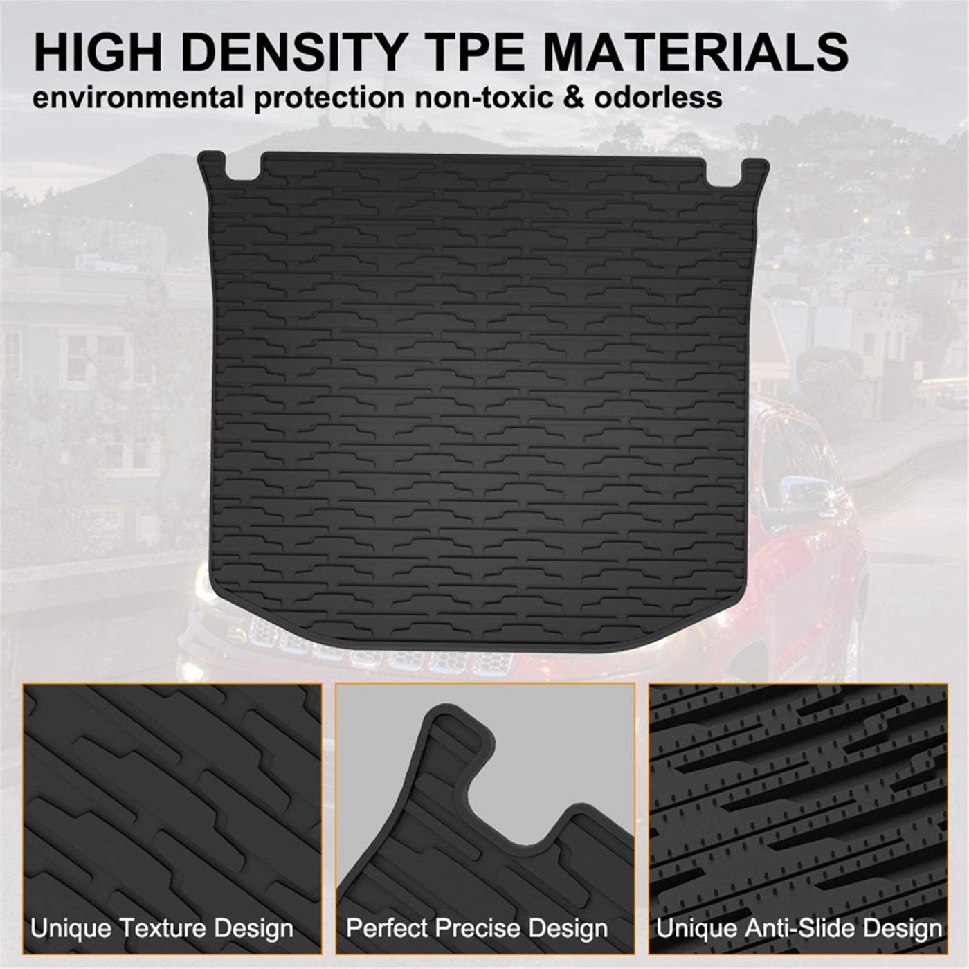 Material: Durable TPE Material Color: Black Package Dimension: 43.31 x 7.28 x 7.28 inches Shipping Weight: 9.92 LBS Package Included: 1 x Set of Black Rear Cargo Mat for 2011-2019 Jeep Grand Cherokee