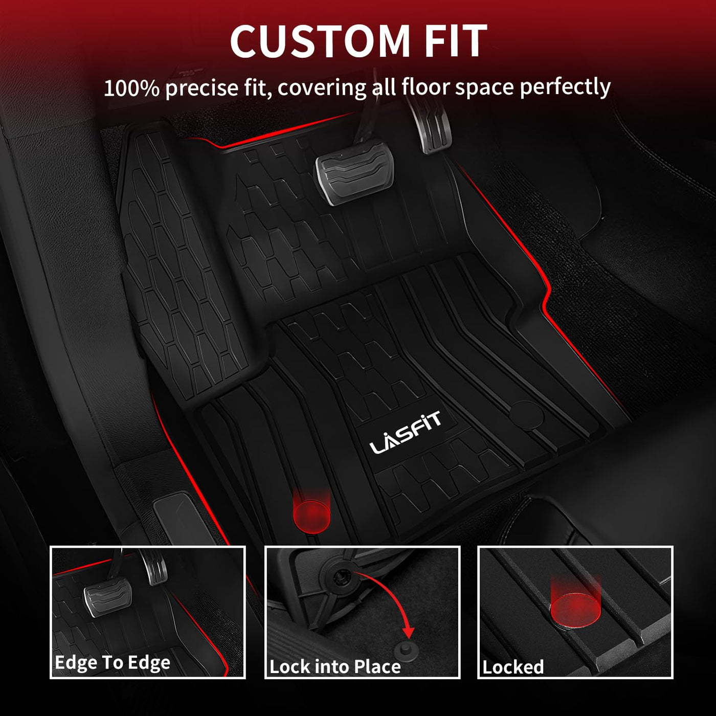 Q: Do LASFIT Floor Mats provide all-weather protection?A: Yes, LASFIT Floor Mats offer all-weather protection against dirt, mud, salt, rain, snow, and high temperatures, ensuring your vehicle's flooring remains safeguarded in various conditions.