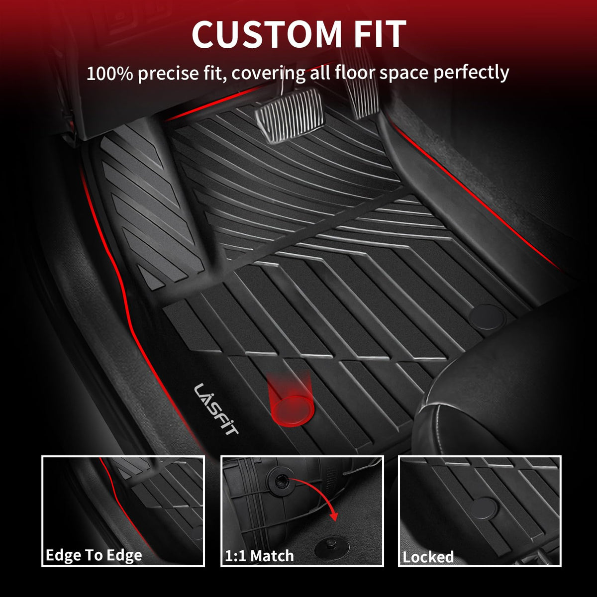 LASFIT Floor Mats for Cadillac XT4 2019-2025, All Weather TPE Custom Fit Automotive Floor Mats for Cars, 1st and 2nd Row Car Floor Mats Full Set for Cadillac XT4 Accessories, 3 PCS, Black