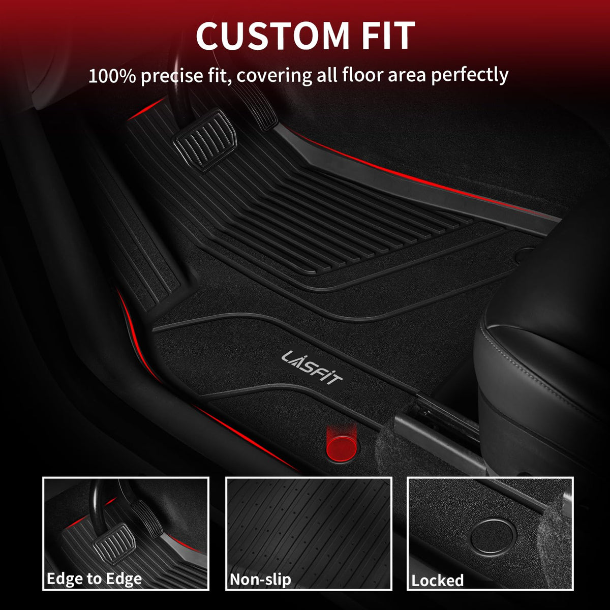 Lasfit Floor Mats For Tesla Model X 6 Seater & Model X Plaid 2025 2024 2023 2022 2021, All Weather Tpe Custom Fit Floor Liners 1