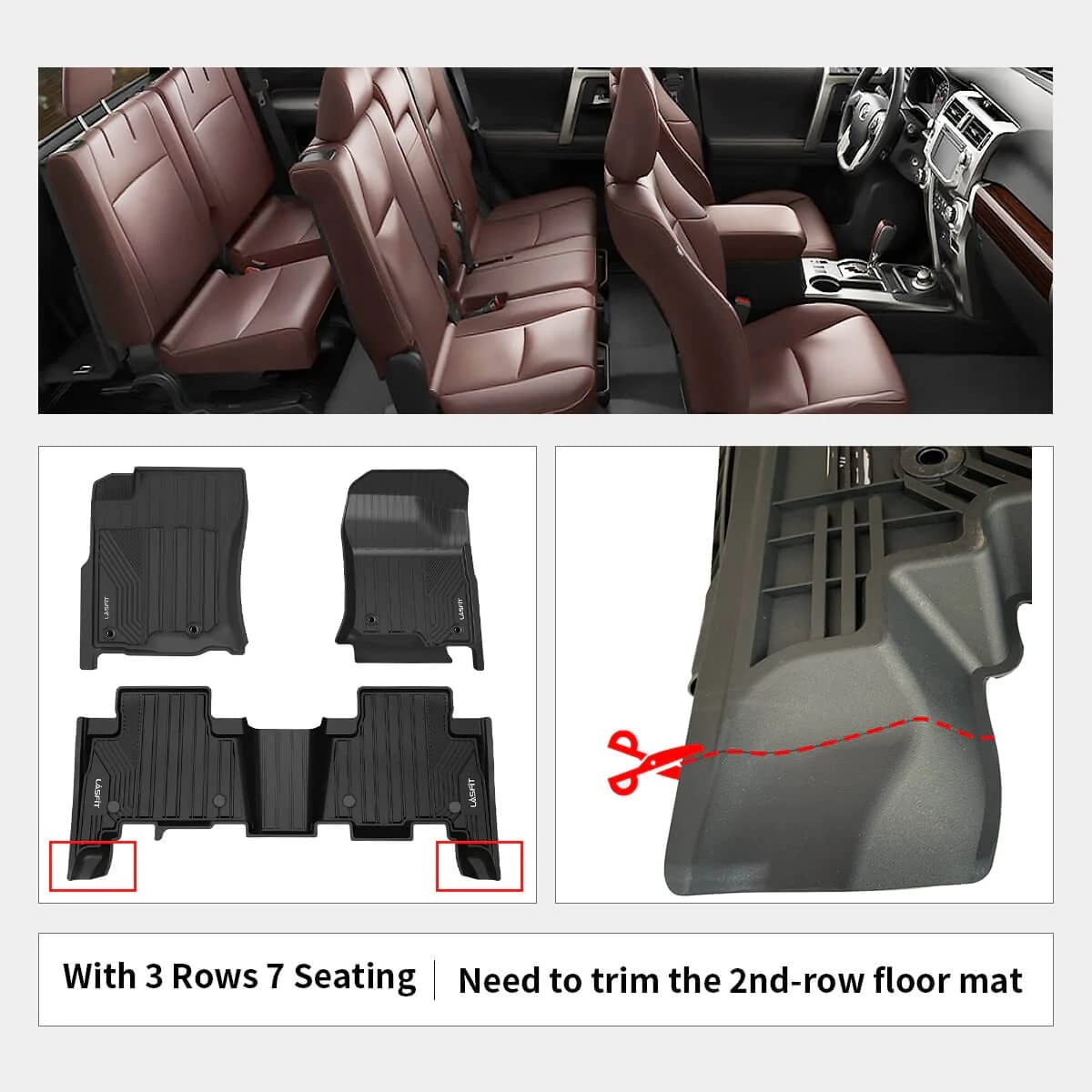 Lasfit Floor Mats For Toyota 4Runner 2013-2024 (Fit 7 Seats&5 Seats) & For Lexus Gx460 2014-2023, All Weather Tpe Custom Fit Flo