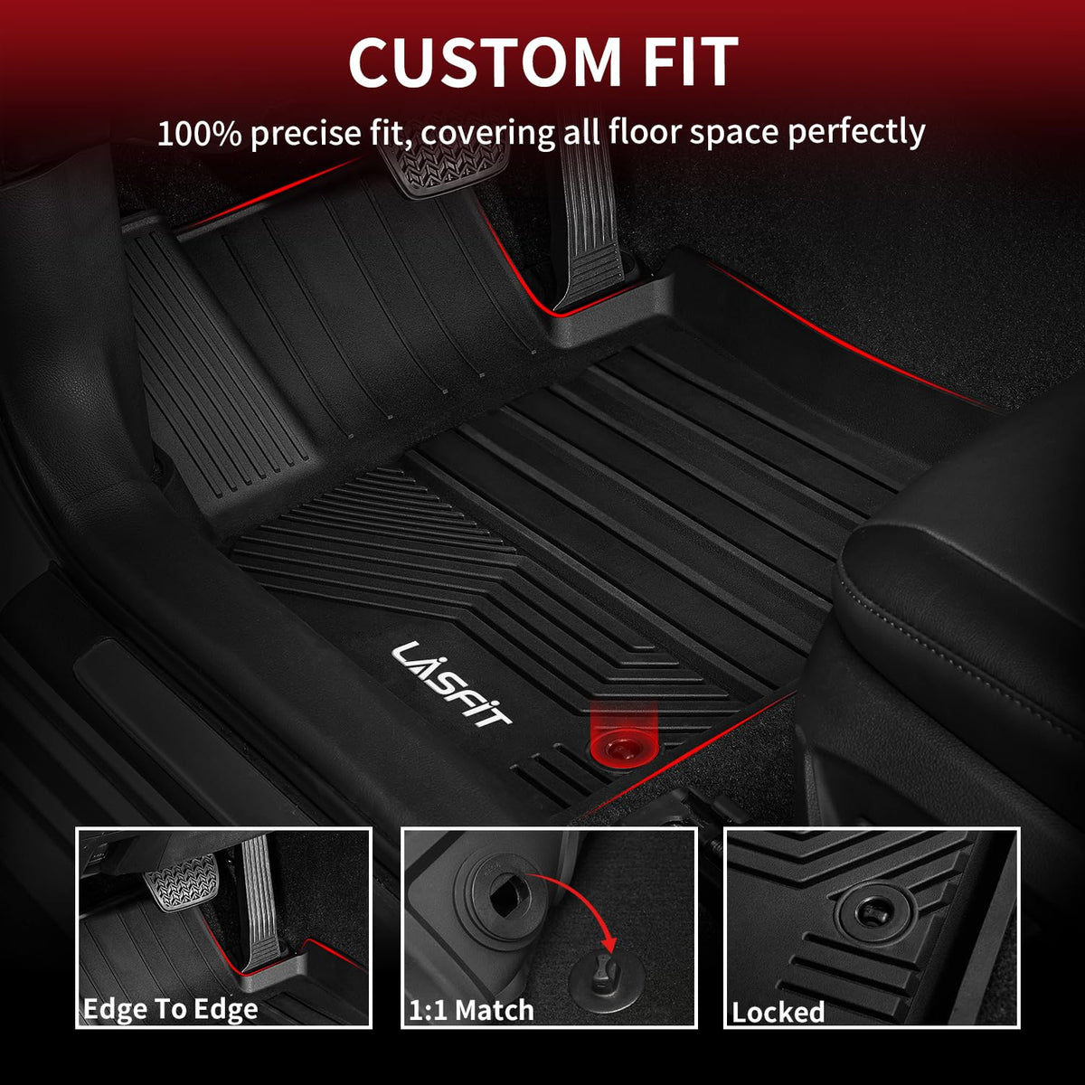 This automotive floor mats is custom fit for Toyota 4Runner 2013-2024, Front Row + 2nd Row TPE floor liners. The Car floor mats are suitable for people who like outdoor activities. Outdoor scenes: climbing, hiking, camping, hunting, fishing, surfing, skiing etc.The only thing you will get is the safe & custom fit 4runner floor mats for limited/sr5/sr5 premium/trail/trd/trd off-road/trd off-road premium/trd pro/trd sport/venture/nightshade. It's good for containing mess from wet or dirty shoes, whatever you step in. Reasons to choose LASFIT Floor Mats: The edge of the floor mat adopts a reinforced design, so that the floor mat fits the contour of the original car carpet more. Remain flexible in extreme weather and is not easily break, deformed, deteriorated or hardened. Easy to install and disassemble, the whole process only takes a few seconds. All seasons and weather full protection. Keep your carpet clean. Easy to Clean and Maintain, Soft and Flex Tough. Safety, Give you the most comfortable feeling.
