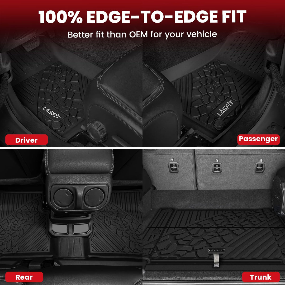 Lasfit Floor Mats & Trunk Mat For Jeep Wrangler Unlimited 4Xe 2021-2025 4 Door With Subwoofer, All Weather Tpe Custom Fit Car Ma