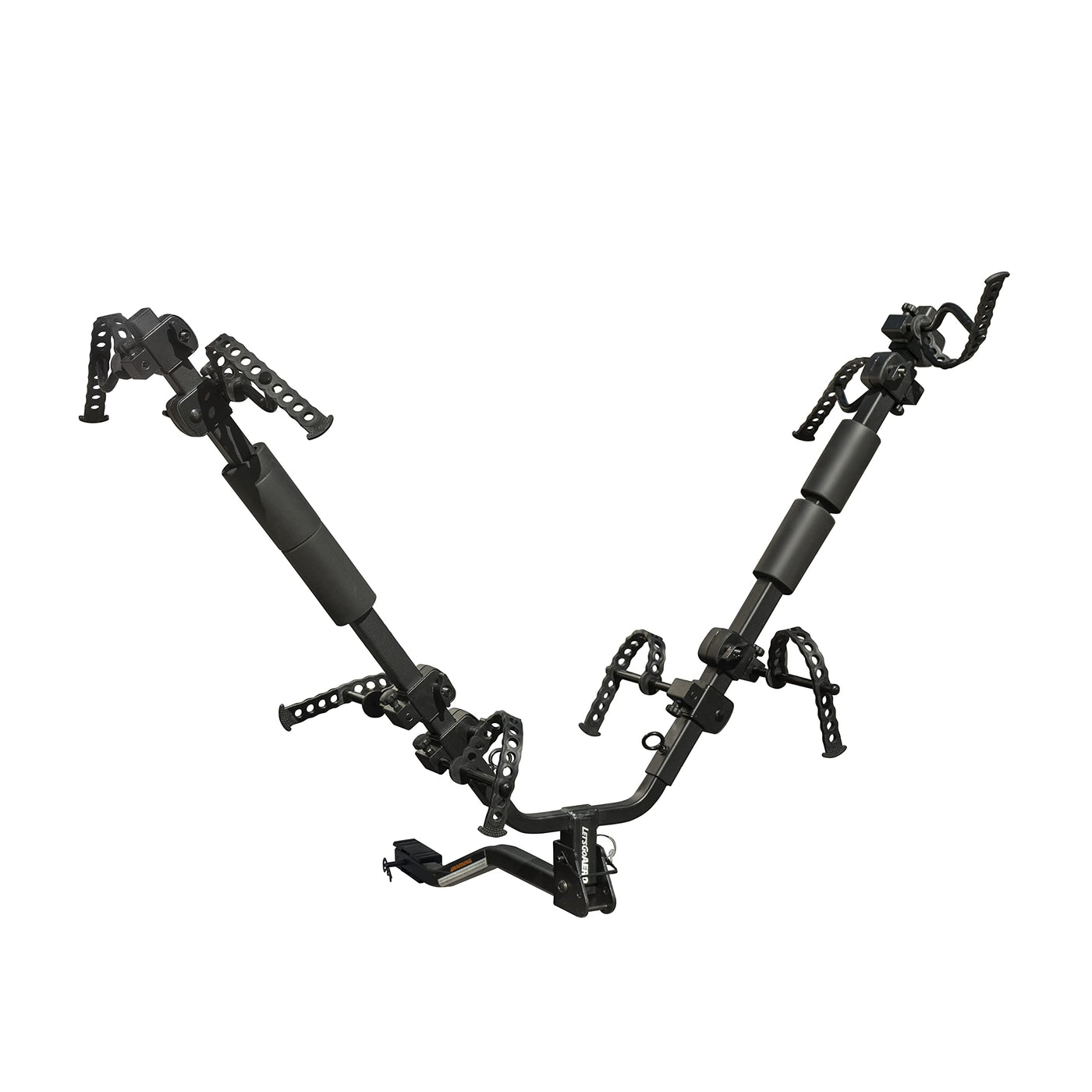 This Bikewing-2 Pro V-Rack Is Loaded With Enhancements For Ease Of Use Adjustment And Fit For A Wide Range Of Bicycles And Carries Two Bikes Of All Sizes And Frames Suspended By The Wheels With Zero-G Bike Freeze Technology For Even The Most Rugged Road Conditions. The Tilt-Back Feature Offers Rear Hatch Access With Bikes Both On And Off The V-Rack. Ultra-Light And Modular For Quick Mount And Compact Storage, The Bikewing-2 Is Simply Ideal For The On-The-Go Lifestyle. With An All-New Blockhead Cradle Design, This Vrack Provides Infinite Adjustment Along With V-Wing Support Arms Both From Top And Bottom And Side-To-Side; Cradle Pins Are Reversible On Either Side Of The Cradles For Quick Adjustment Bicycle Fitting In No Time. Fits 1.25-Inch And 2-Inch Hitch Receivers With A Heavy-Duty 2In Black Trivalent Aluminum Hitch Adaptor And Has A 4In Riser Shank For Increase Ground Clearance. The Bikewing-2 Is Approved For Motorized Rv And Off-Road Use.