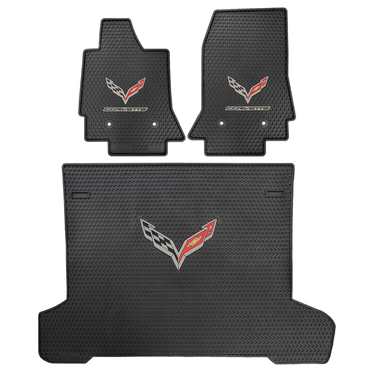 Lloyd Mats Custom-Fit All-Weather Rubber Floor Mats For Corvette C7 2014-2019 2Pc Front, 1Pc Coupe Cargo.