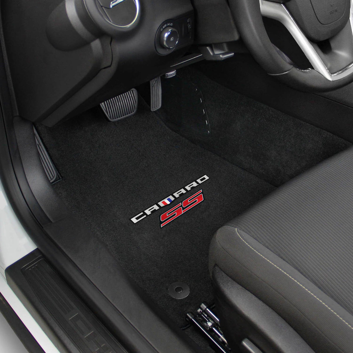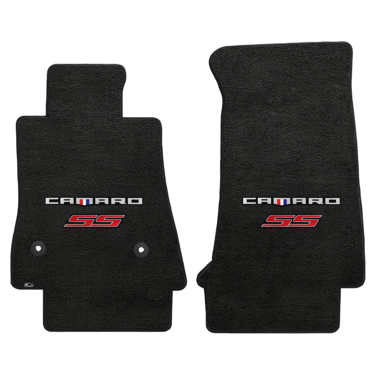 Lloyd Mats Velourtex Floor Mats For Camaro 2016-On 2Pc Mats Ebony Velourtex Camaro + Ss Red Double Logo