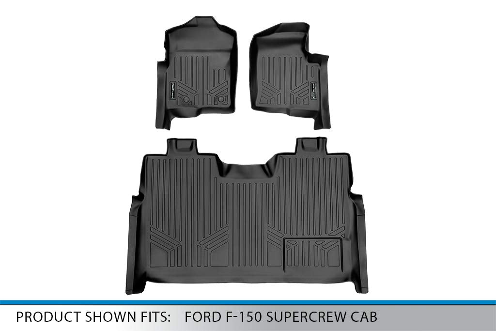 MAXLINER Custom Fit Floor Mats 2 Row Liner Set Black Compatible with 2011-2014 Ford F-150 SuperCrew Cab