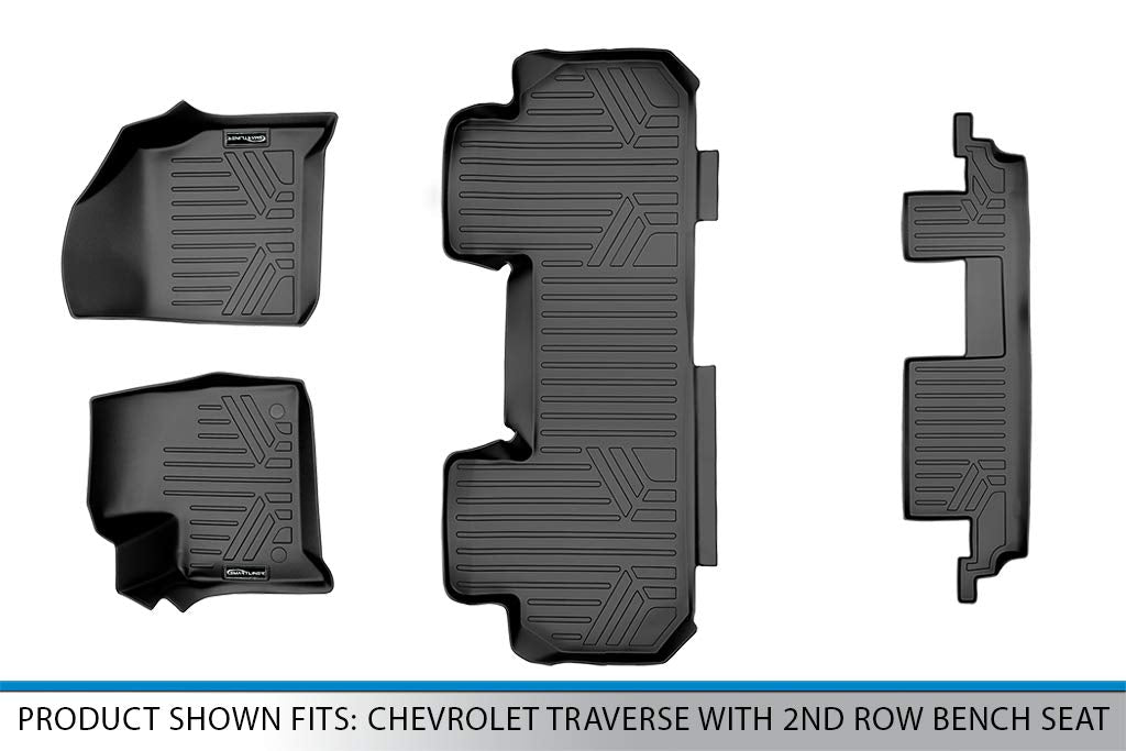MAXLINER Custom Fit Floor Mats 3 Row Liner Set Black Compatible with 2018-2023 Chevrolet Traverse with 2nd Row Bench Seat
