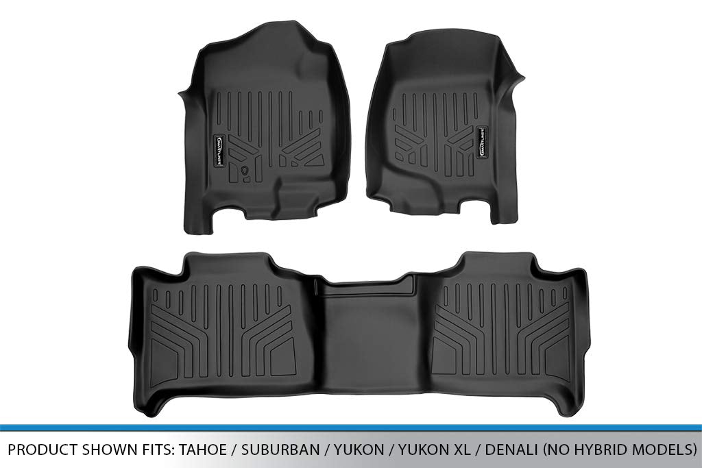 MAXLINER Floor Mats 2 Row Liner Set Black Compatible with 2007-2014 Tahoe/Suburban/Yukon/Yukon XL/Denali (No Hybrid Models)