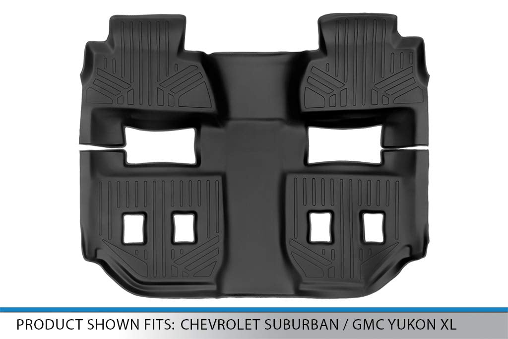 Q: Are the MAXLINER floor mats compatible with my 2015-2018 Chevrolet Suburban or GMC Yukon XL?A: Yes, the MAXLINER floor mats are specifically designed to fit the 2nd and 3rd row of 2015-2018 Chevrolet Suburban and GMC Yukon XL models, ensuring a perfect fit for your vehicle.