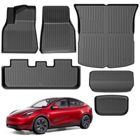Maysoo Floor Mats For Tesla Model Y 2021-2024 2025 (5-Seater) - All-Weather Tpe Waterproof Non-Slip Front And Rear Trunk Mats Cargo Liners, Set Of 6 (Not Fit 7-Seat)