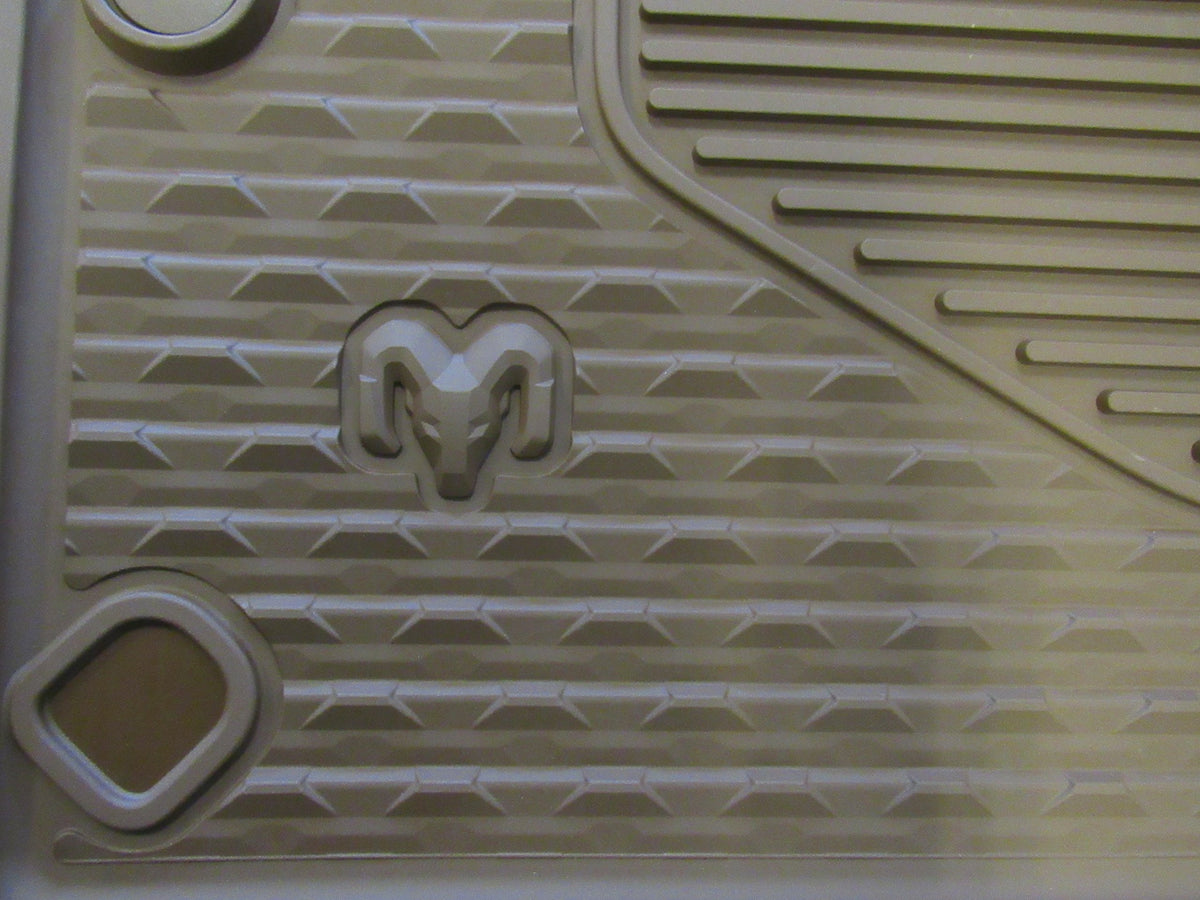 Q: What material is the Mopar 82215320AC MAT KIT FLOOR REAR made of?A: The Mopar 82215320AC MAT KIT FLOOR REAR is made of high-quality rubber, ensuring durability and easy maintenance while providing excellent protection for your vehicle's floor.