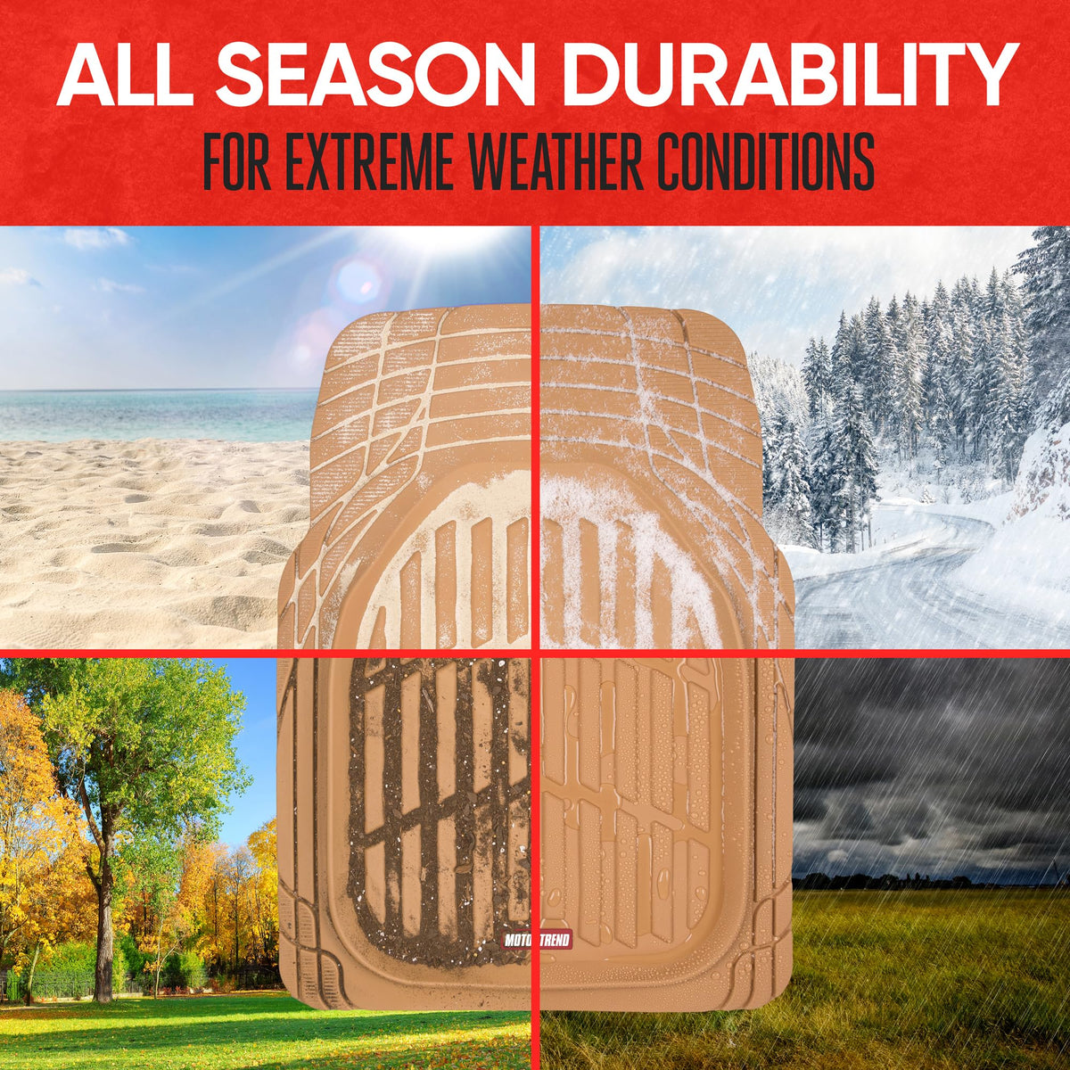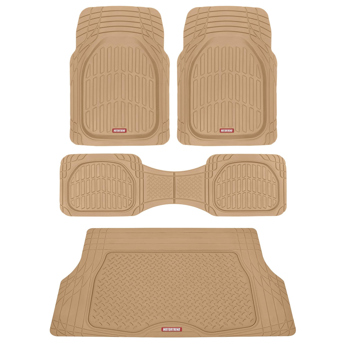 Motor Trend 4pc Beige Car Floor Mats Set Rubber Tortoise Liners w/ Cargo for Auto SUV Trucks