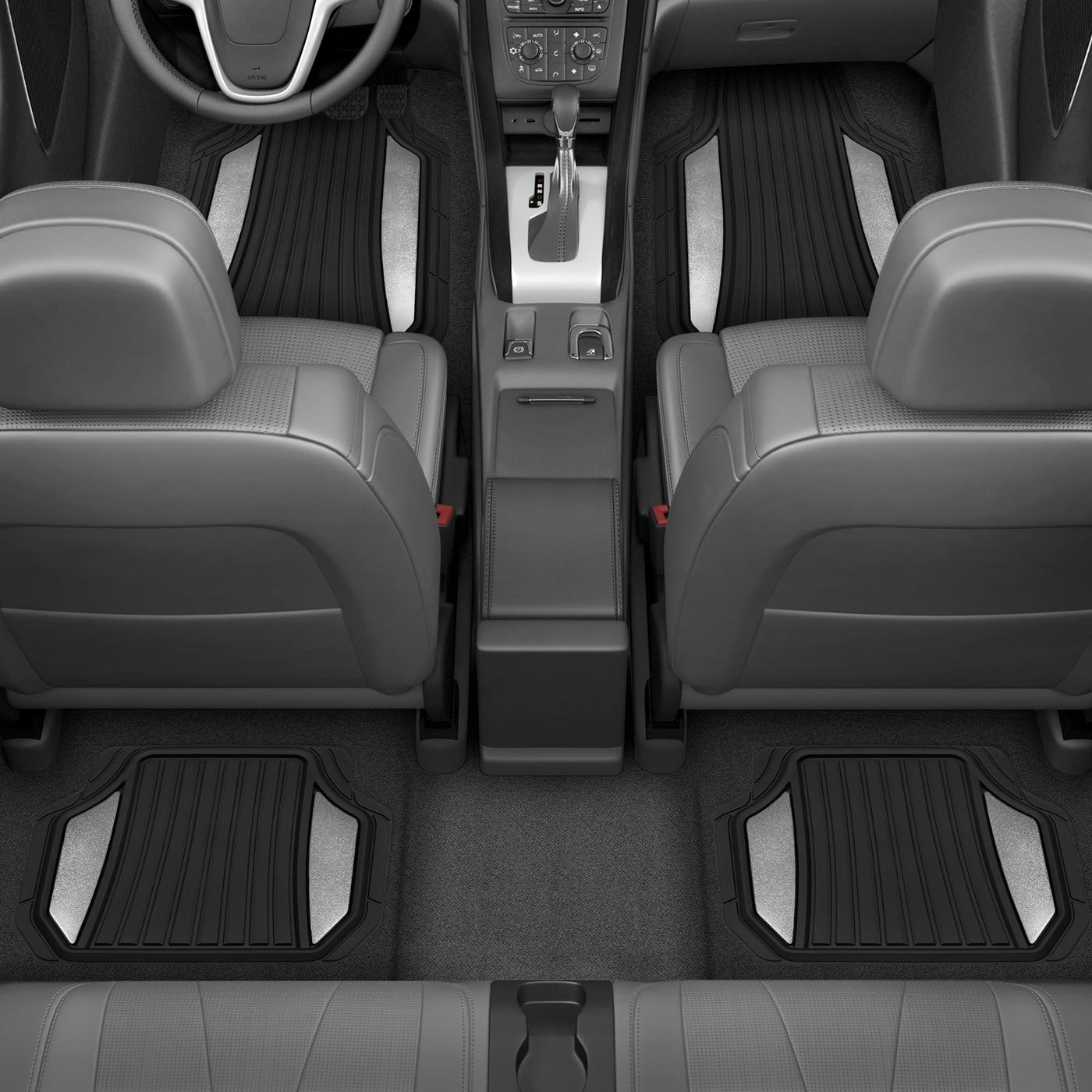 Motor Trend ChromeTech Car Floor Mats Full Set - Durable Rubber Floor Mats for Cars with Two Tone Accent, All Weather Interior P