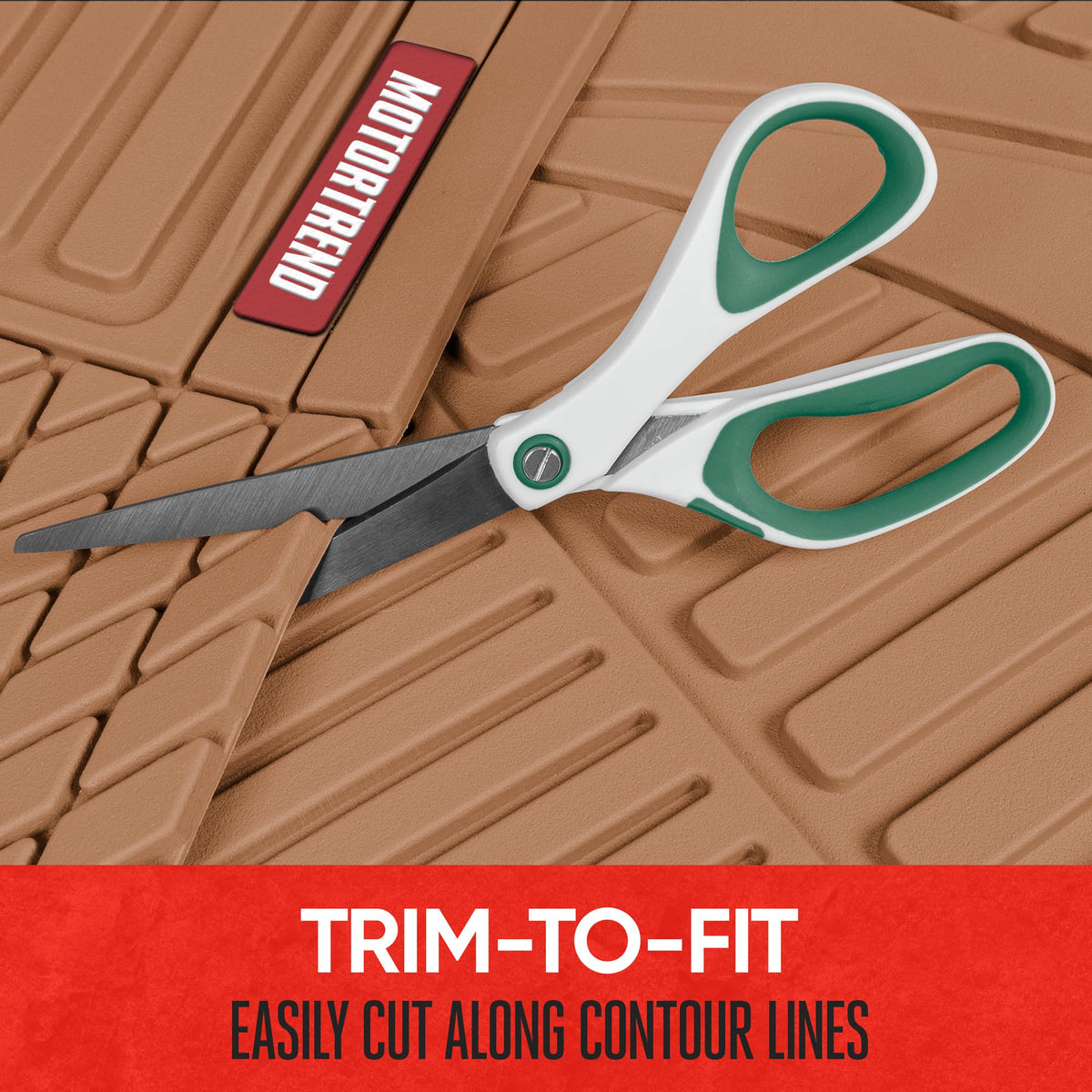 Motor Trend FlexTough Advanced Beige Rubber Car Floor Mats - Heavy Duty Trim to Fit All Weather Floor Mats for Cars Truck SUV -