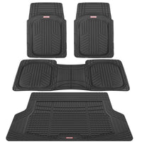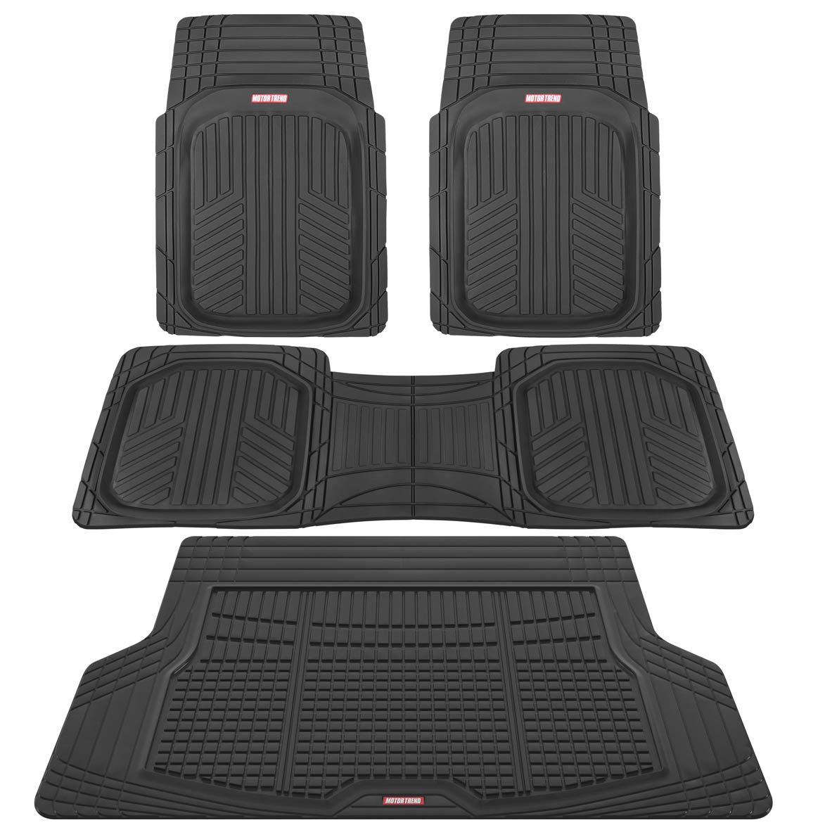Motor Trend FlexTough Black Floor Mats for Cars & Cargo Mat Full Set - All Weather Front & Rear Rubber Automotive Floor Mats & C