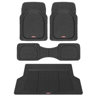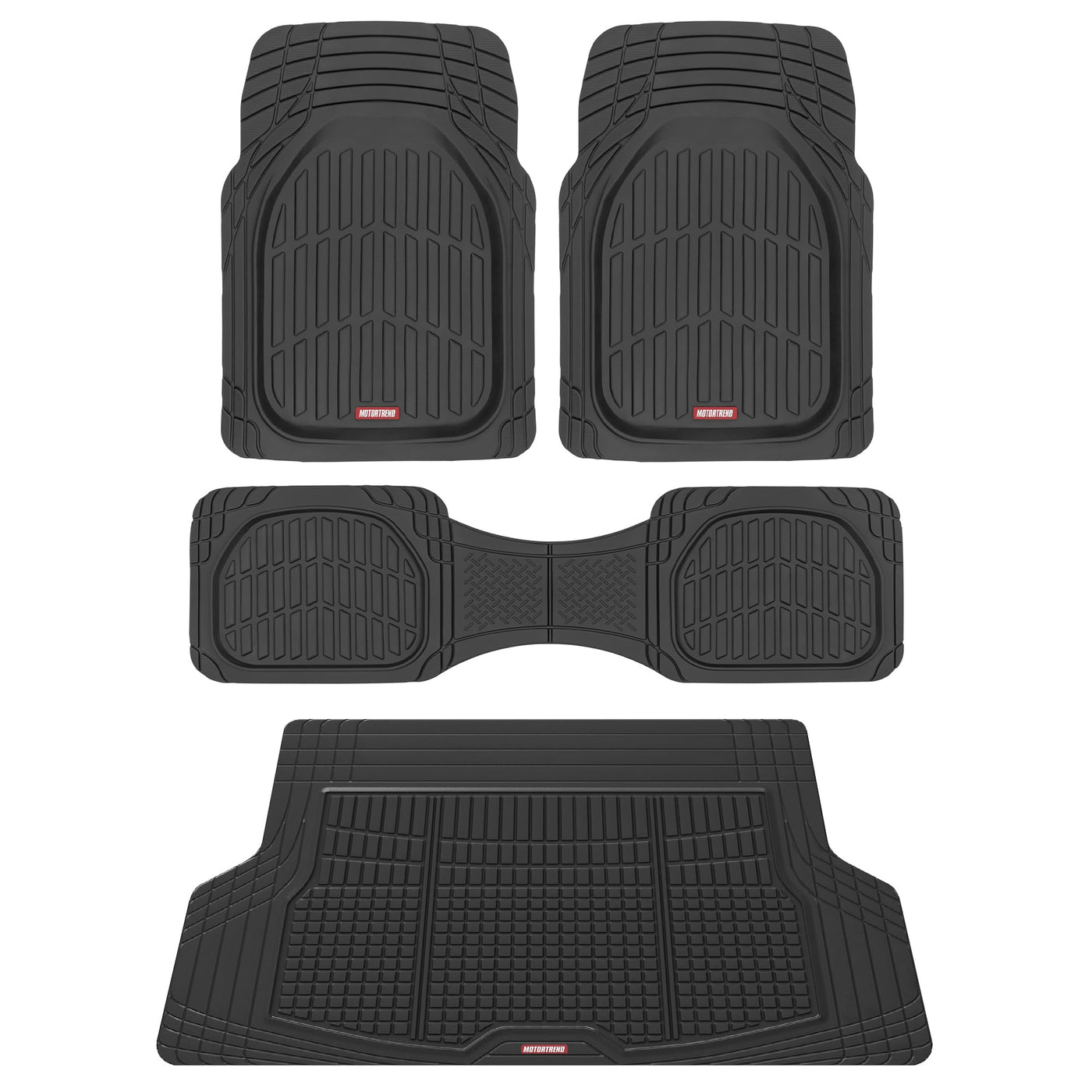 Motor Trend FlexTough Contour Liners Deep Dish 3 pc Rubber Floor Mats & Trimmable Trunk Liner Cargo Mat - Heavy Duty All Weather