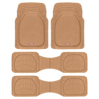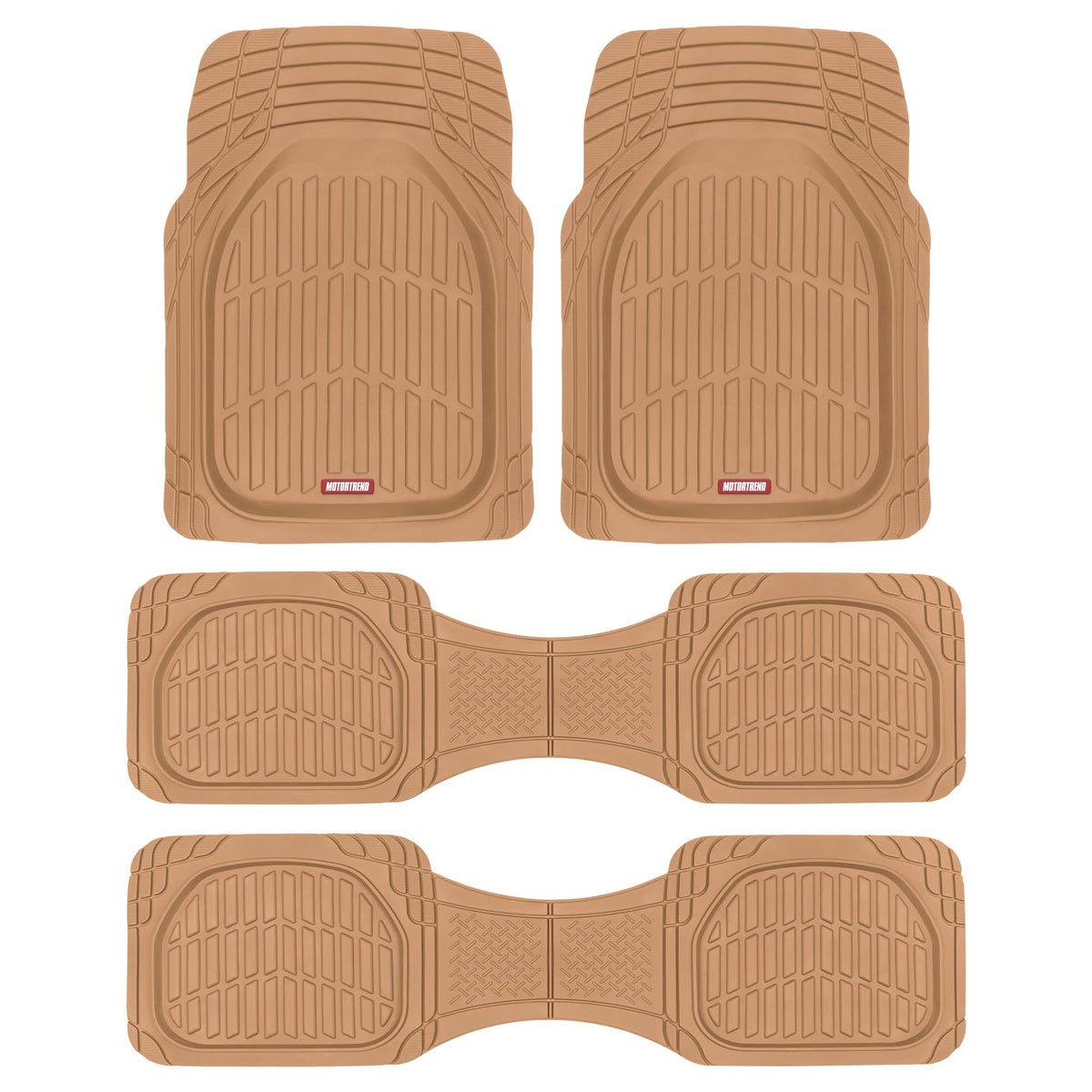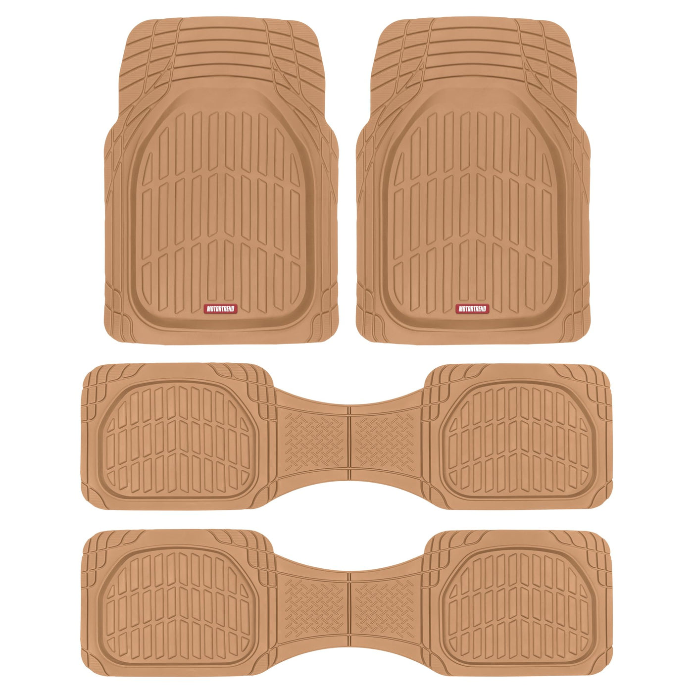 Motor Trend Original FlexTough Beige Rubber Car Floor Mats for 3 Row Vehicles, Front & Rear 2nd Row Deep Dish All Weather Automo