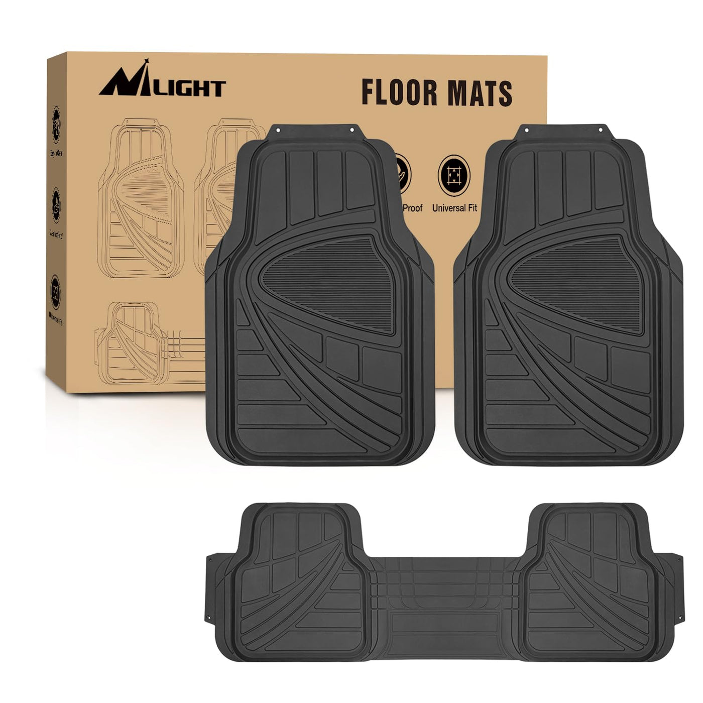 UNIVERSAL FIT - These universal fit floor mats can be Trimmed to compatible with most Cars Trucks SUVs,including two front floor mats and one rear floor mats | DURABILITY - Nilight's heavy duty mats are constructed from high-quality PVC can stand up to years of wear and tear especially compared to less sturdy cloth mats. | SEAMLESS PROTECTION - Nilight's floor mats protect your upholstery from big spills as well as the smallest sand particles. No matter the damaging effects of water, mud, snow, ice, dirt, sand, pet fur, and debris. | FAST CLEANING - You can wash off messes that end up on your floor mats in seconds with soap and water. In some cases, a simple spray of the hose will do the trick. | LIFETIME SERVICE - Everything is made to order with our advanced CNC cutting machines and applications so you can trim your own floor mats for your vehicles according to your preferred specifications,Two Years Warranty Honored by Nilight
