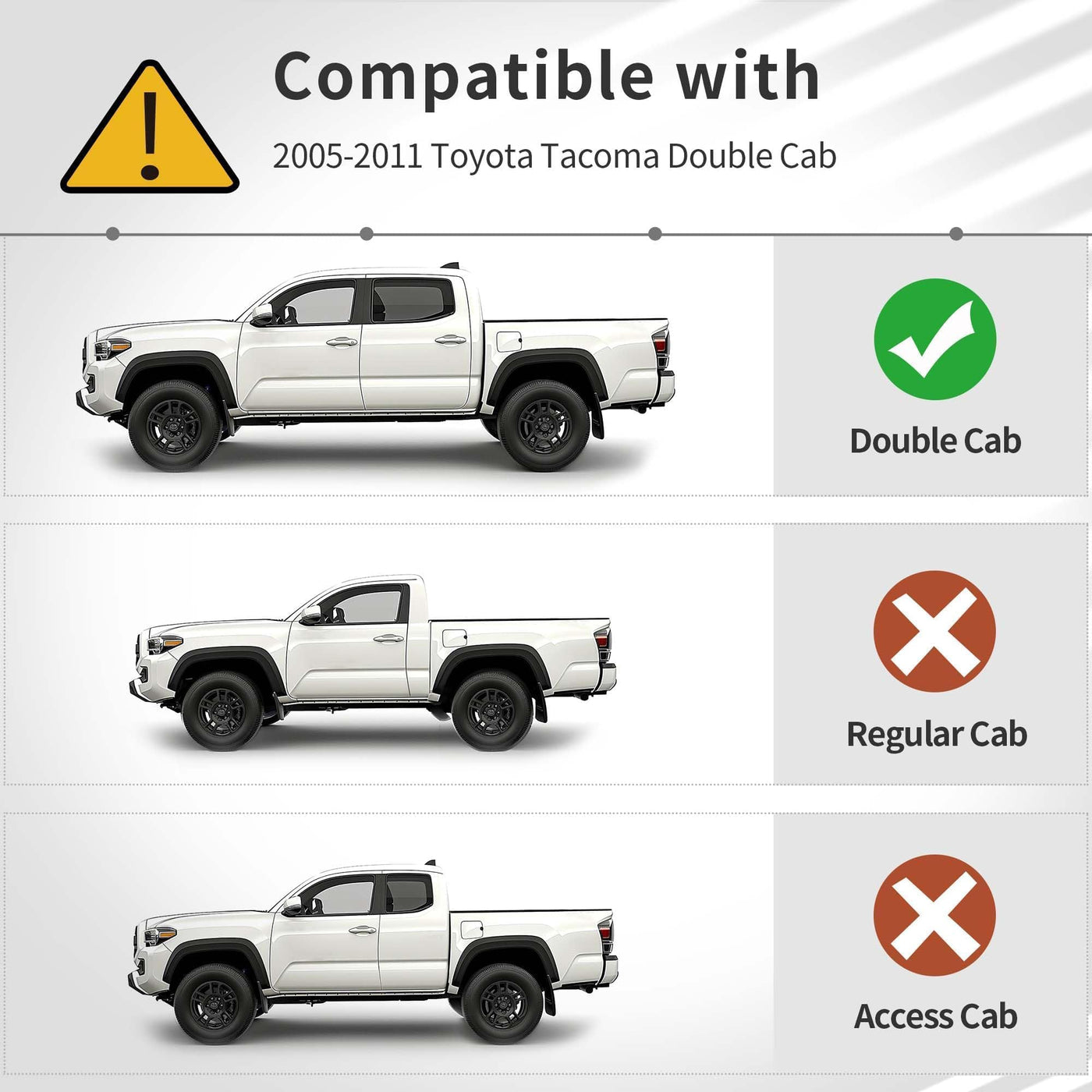 Custom Fit: OEDRO Floor mats fit Toyota Tacoma Double Cab 2015 2014 2013 2012 2011 2010 2009 2008 2007 2006 2005; Comprehensive coverage is ensured by 3D laser scanning to protect the front and back of your Tacoma's footwell | Rugged & Sturdy: OEDRO floor mats are made from high-density, sustainable TPE material, these 2015 Tacoma car mat offer 300% better temperature resistance than PVC; Soft yet sturdy, designed to withstand wear and tear in all weather conditions | All-Weather Protection: These Toyota Tacoma all-weather floor mats features deep channels and raised edges for odorless, non-slip coverage; Ideal for skiing, beach, or driving in rain or dust, provide extended longevity and maintain strength | Easy Installation & Cleaning: The Tacoma Double Cab floor liners are a breeze to install and remove, Card buckle secures liners with factory hooks, preventing sliding; Water and stain-resistant material allows for easy cleaning with a damp towel or rinsing, make floor mats look new | Package Contents: The set of this Toyota Tacoma Double Cab car floor mats includes 2 front floor mats & 1 rear floor liner; Kindly remove old floor mats before installing new floor liners