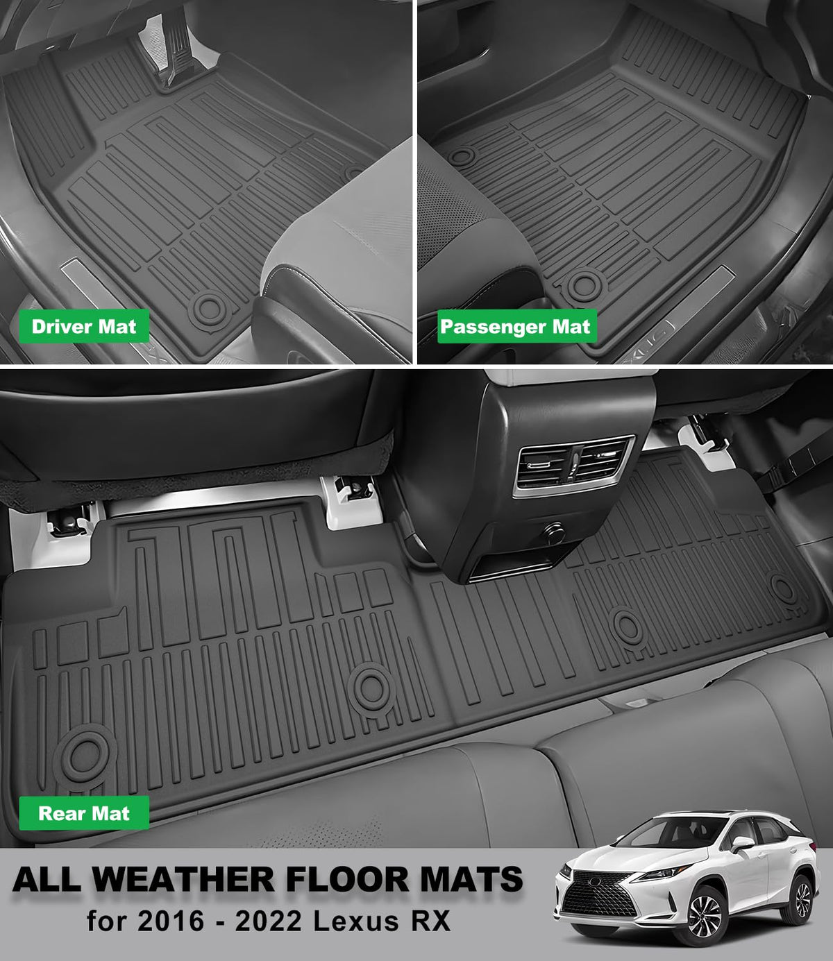 Q: Are these floor mats compatible with all Lexus RX models?A: These floor mats are specifically designed to fit 2016-2022 Lexus RX350 and RX450h models. They are not compatible with the RXL model that has a third-row seating option.