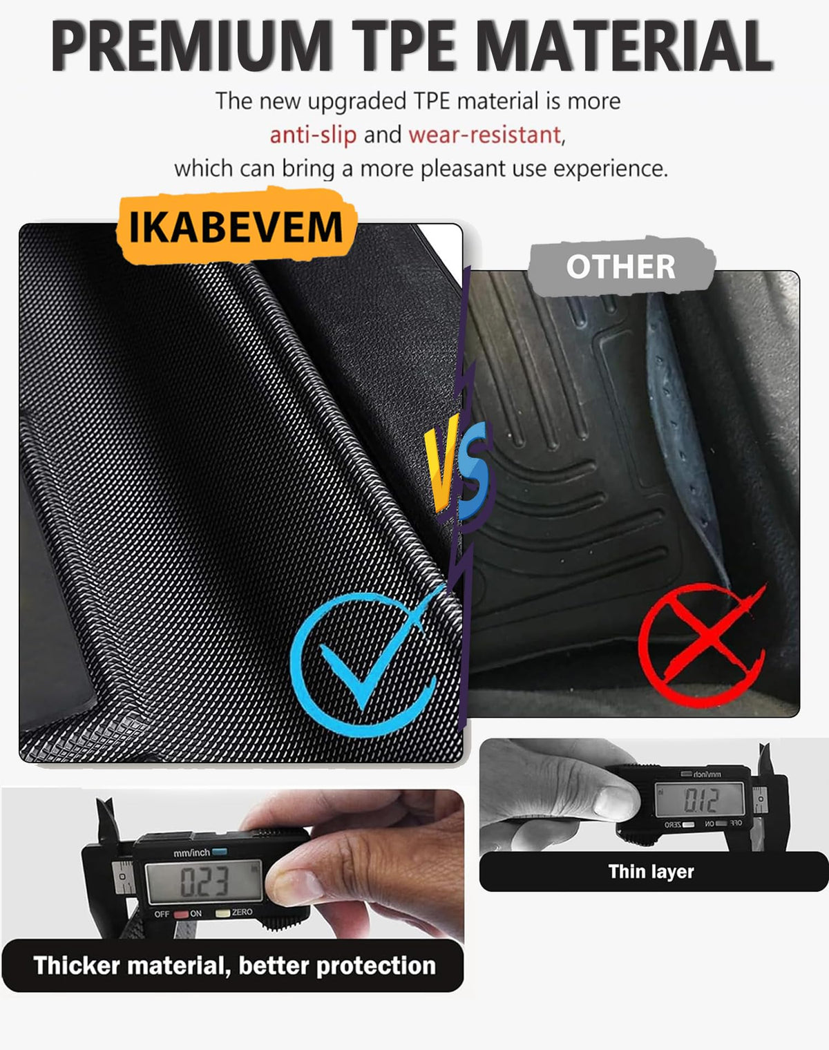 IKABEVEM is aprofessional auto parts supplier integrating design, research and development,production and sales, providing affordable high-quality car floor mats, seatcovers and armrest cover to protect your seats, and a variety of models areavailable.Do you wanna buy car floor mats or seat cover? IKABEVEM's products will meet your needs.We regard customers as God and providethe quality service try our best.Features:1. Original CarCustomization: The car floor mat is customized accordingto the original car floor, and the fit is accurate. 2. GoodSafety: The original car buckle, stable and nodisplacement, does not interfere with the accelerator and brake, driving safer.3.Material: TPE material, non-toxic andtasteless. Waterproof, stain-resistant and durable. 4. EasyInstallation: No need to cut and construct the automobilefloor mats, no need for any tools, just install it directly.5. Easy to Clean: ?Turn the pads upside down and shake them, and the dirt and debriswill come off ? Wipe directly with a wet towel ?Take out the floor mats and wash it withwater and dry it 6. All-Weather Protection: These floor mats can also resist all kinds of weather,such as rain, snow, fog, etc. The PackageContains: Front & Rear 4 Row Full Car Floor Liners