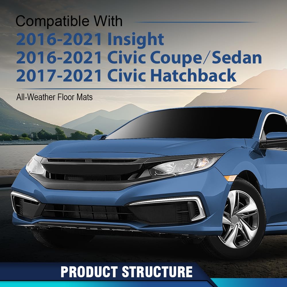 Pit66 Floor Mats Compatible With Honda Civic Coupe Sedan 4-Door 2016-2021, Fit Civic Hatchback 2017-2021, Fit Honda Insight 2016