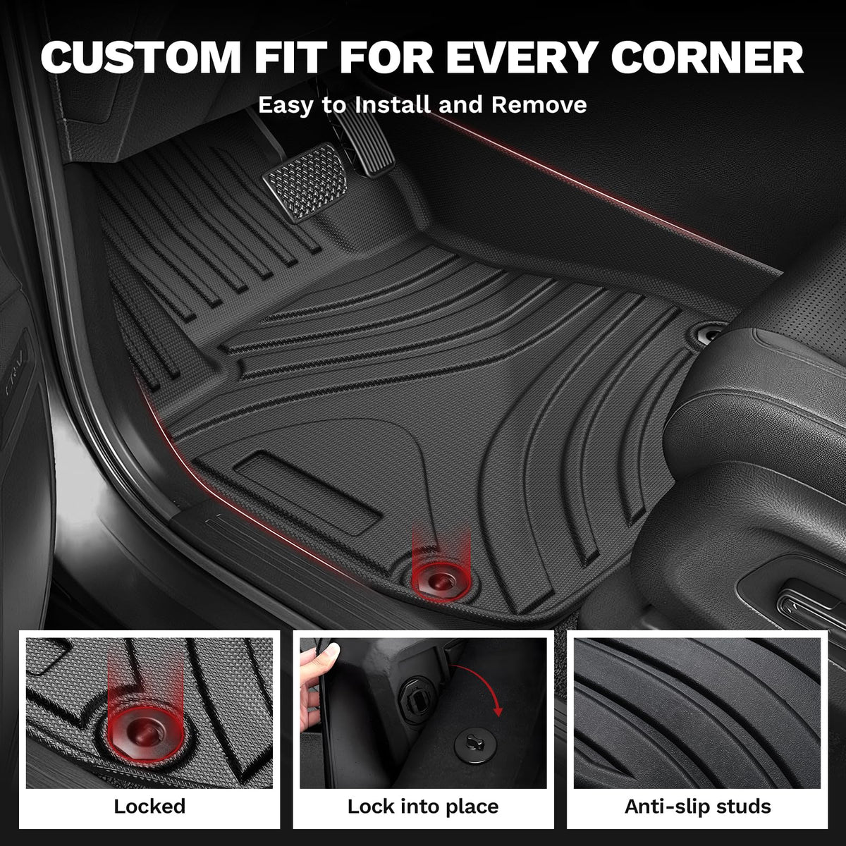 Compatible with Honda CRV CR-V 2023 2024 2025(Include Hybrid) Feature: 1.Featuring a deeply molded, the pattern that captures and holds all dirt, water, snow and spills from hitting the carpet. 2.Better temperature resistance than PVC. The mats are non-toxic, odorless, contain no latex, cadmium, lead or any harmful PVCs. The high tensity TPE material not only feels nice and is extremely wear-resistant, but also remains flexible in extreme cold weather. 3. These floor mats also come in a multi-purpose, standard shape so they give the interior of your car the best fitting look possible. 4.All weather protection against Snow, Mud, Sand, Salt Water and More. - Spill Saver Lip (Prevents spills from reaching the carpet) 5. Custom fit precision of the mat protects your vehicles carpet floor by stopping spills and any other mess thanks to the liners raised and strengthened lip. 6.Easy to Install:.it only takes approximately 15 minutes to install,don t need any specialty tools. SPECIFICATIONS 2 x front liners (driver & passenger side) 1 x rear liner