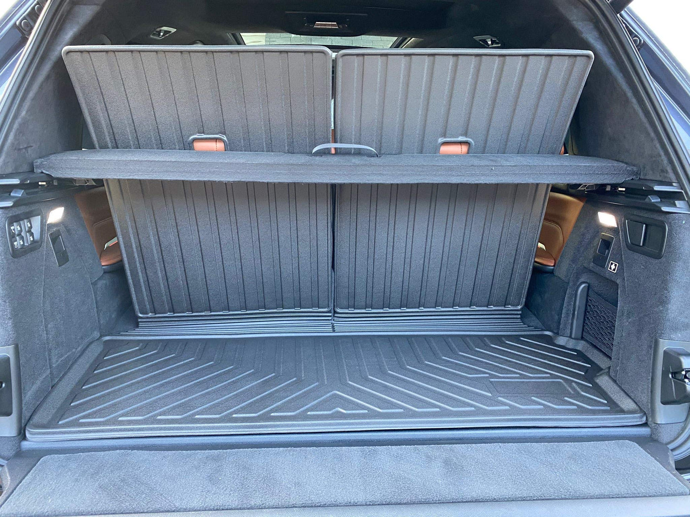 TN TrunkNets Inc. Trunk Cargo Liner for SUV is a perfect option to protect the trunk of your car from scratching, dirt, mud, and spills while saving its new look. Specially created for the BMW X7 M50i xDrive40i 2019-2025 , it doesn't require additional tools to set and no need to spend hours cutting along the size of your trunk. All you need is to place the SUV cargo mat into the trunk and enjoy every trip with no rolling the items around. Why TN TrunkNets Inc. Trunk Mat for SUV? - Made from premium TPE, which is resistant to heat, freeze, scratches, and is absolutely water-proof. - Custom Fit for 100% protection, you won't get the size wrong! - All-Season and Highly-Durable TPE material - Increased and Strengthened Lip for spills protection - Easy-to-wash and stain-resistant surface - 3D Pattern design, that doesn't allow items to roll over the trunk - 1 Year Warranty! Scroll Up and Add To Cart the finest trunk Cargo Liner for your BMW X7. Note : You may see Sun Glare on photo, Picture was taken in Daylight. Liner Color Is BLACK !