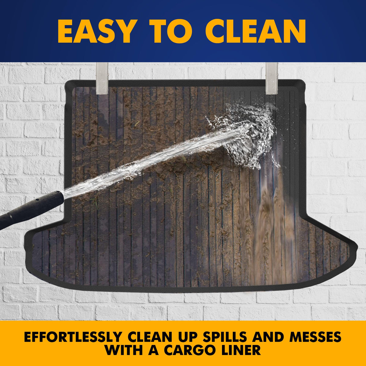 Q: How do I clean the Premium Cargo Liner?A: The Premium Cargo Liner features an easy-clean design with a stain-resistant surface. You can maintain it by simply rinsing it with water to remove dirt and spills, restoring its gleam effortlessly.