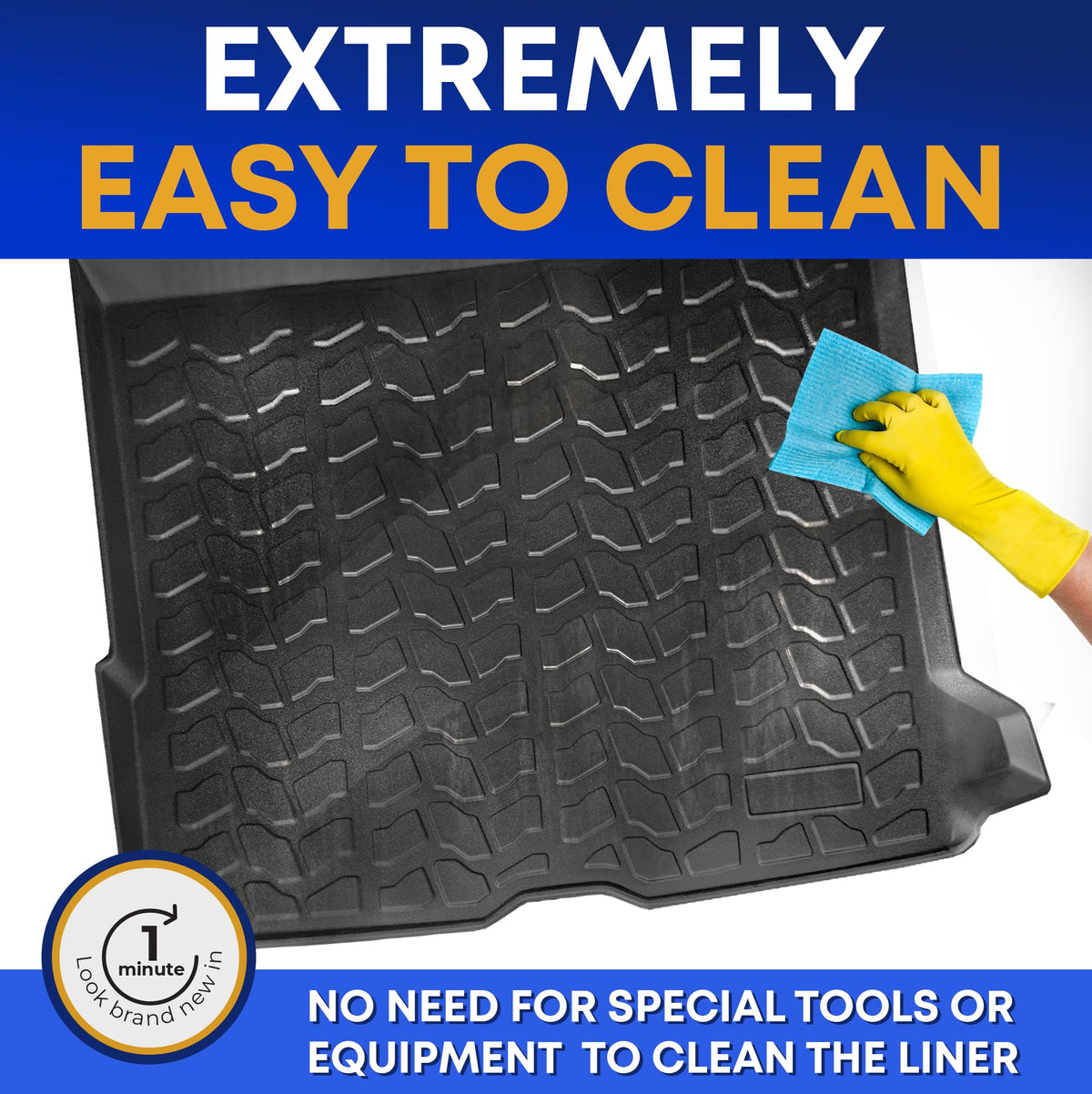 Q: How do I clean and maintain the cargo liner?A: The cargo liner features an easy-clean design with an anti-skid, stain-resistant surface. To maintain it, simply rinse with water to remove dirt and spills, and it will restore its original appearance.